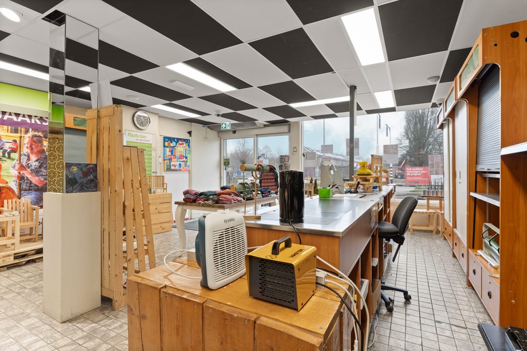 Entree met automatische schuifdeuren, winkelruimte met complete inrichting met schappen, koelingen klimaatbeheersing, magazijn met koelcel en vriescel, toiletten, kantoortje, kitchenette. De winkel is voorzien van een systeemplafond met verlichting, wandafwerking en radiatoren voor de verwarming. Kortom een turn-key winkelruimte op een markante locatie!