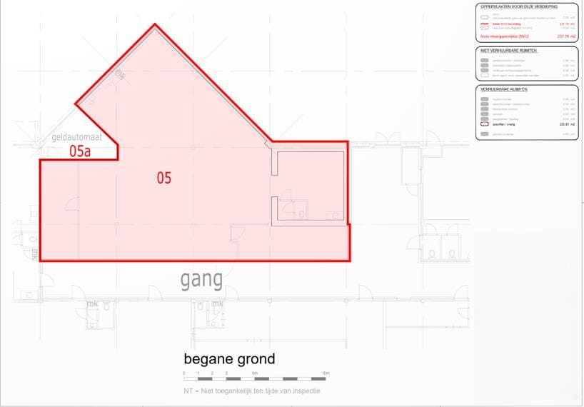 Betreft een winkelruimte van circa 238 m2 op de begane grond, gelegen op een prominente zichtlocatie direct naast een van de hoofdentrees en grenzend aan het parkeerterrein. De ruimte is modern afgewerkt en beschikt over een tegelvloer met vloerverwarming, een airco-unit, een systeemplafond met ledverlichting, een dubbel toilet met voorportaal, wastafelmeubel en spiegel, en een keuken voorzien van een koel-/vriescombinatie. De ligging en afwerking maken deze ruimte zeer geschikt voor detailhandel of publieksgerichte dienstverlening. Het gehuurde wordt in huidige staat aan huurder opgeleverd, aan partijen genoegzaam bekend. Het gehuurde wordt als casco door Huurder gehuurd. Alle overige componenten die niet tot het casco zoals hierna omschreven behoren maken expliciet geen onderdeel uit van het Gehuurde. Onderhoud, reparatie, vervanging en/of vernieuwing hiervan is derhalve voor rekening van Huurder.