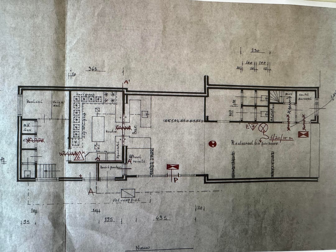 Garderobe, trapkast. Het restaurant gedeelte 9.12 meter x ca. 4.45 meter en 4.00 x 6.00 meter.