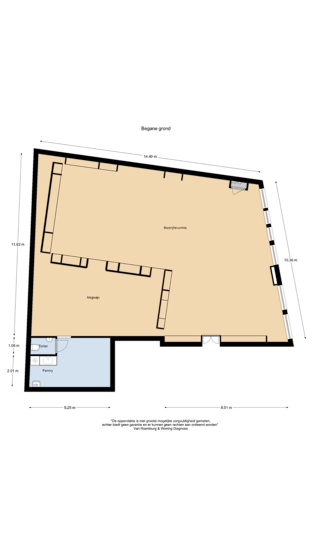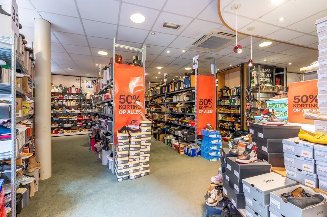 De winkel beschikt over een royale frontbreedte van circa 11,40 meter en een plafondhoogte van circa 2,70 meter. De aluminium pui met de glazen deuren geeft het pand een representatieve uitstraling. De winkelruimte is voorzien van airconditioning, een warmtegordijn, pantry met sanitaire voorzieningen, een kantine en een demontabele scheidingswand tussen de winkel en het magazijn.