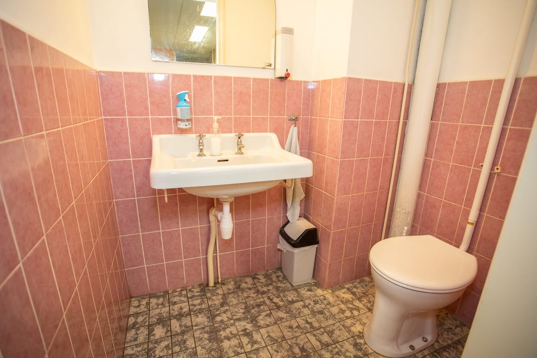 Aan de voorkant van het pand vindt u de entree van de winkel. De winkel zelf heeft een U-vorm en is voorzien van een toiletruimte, een pantry en een kantoorruimte.