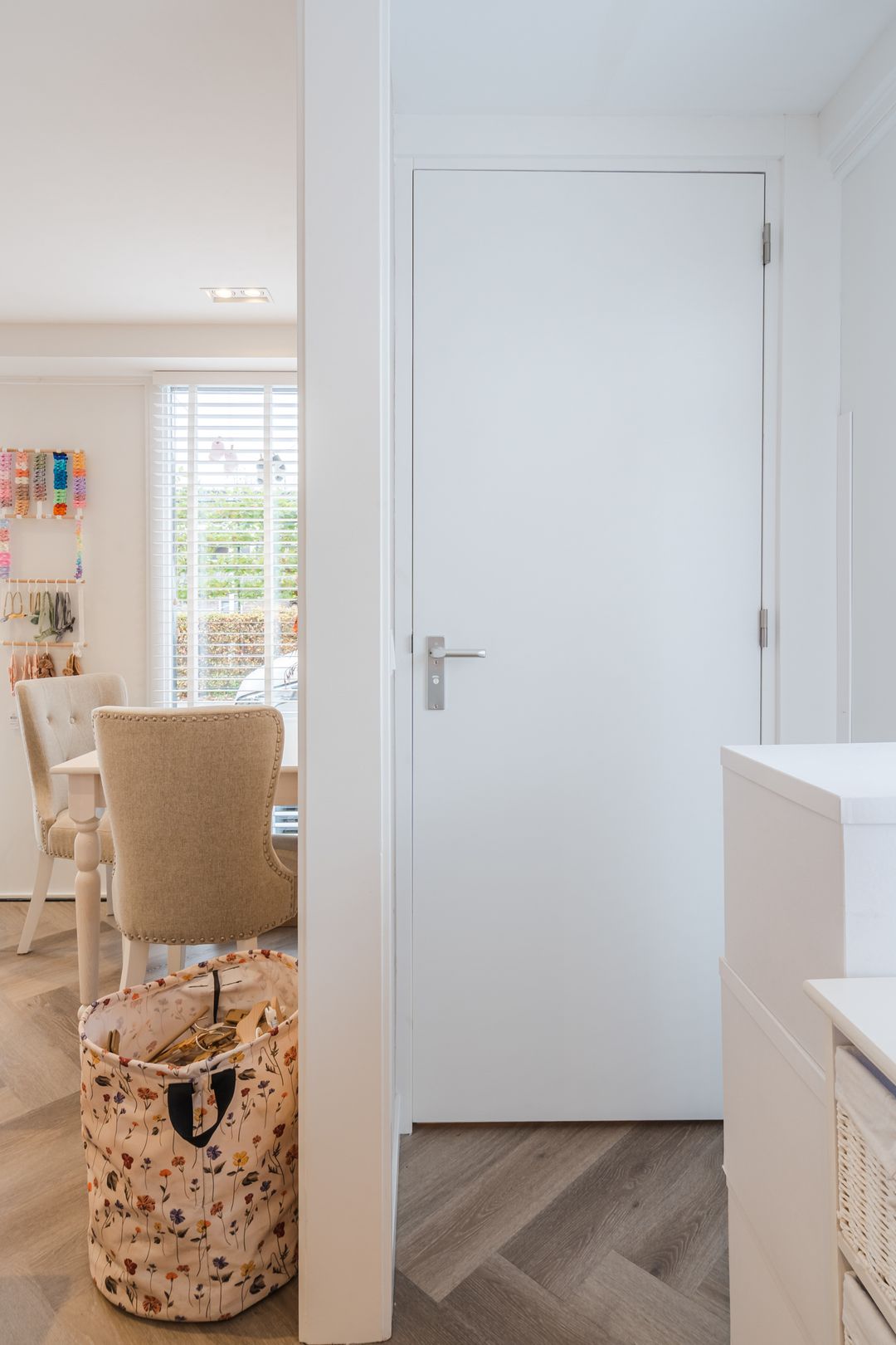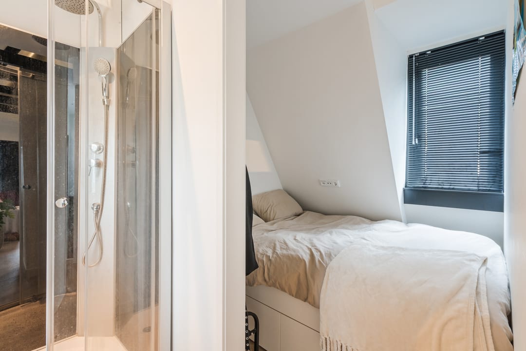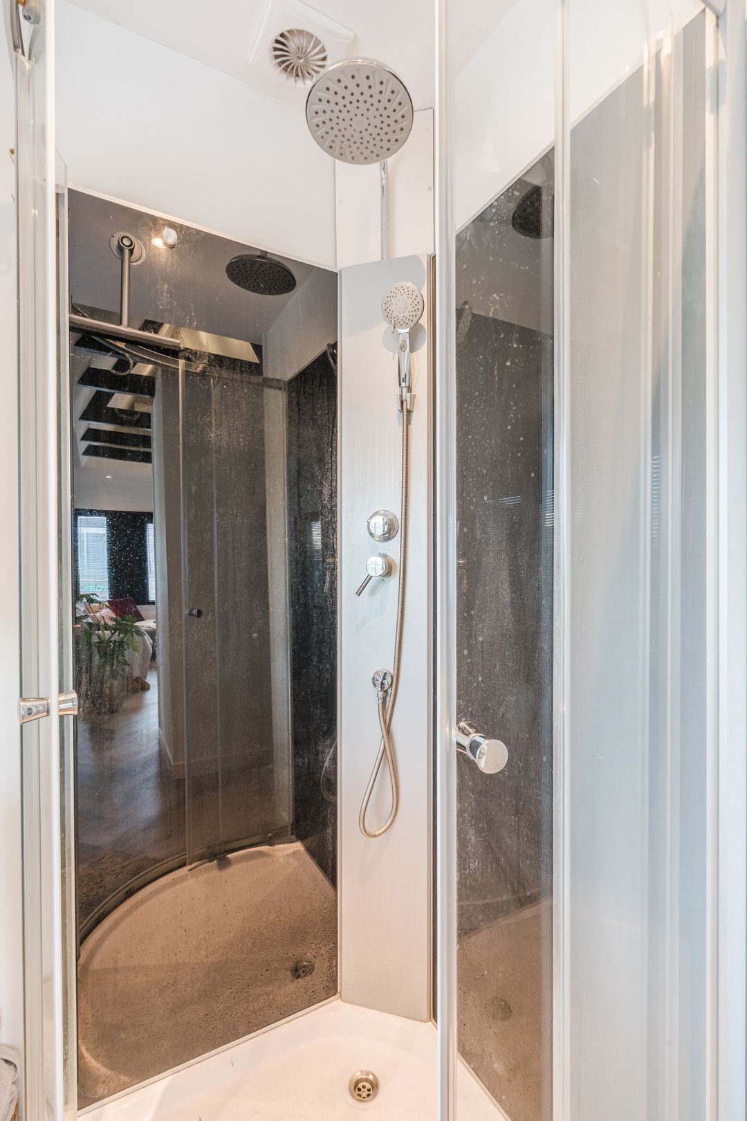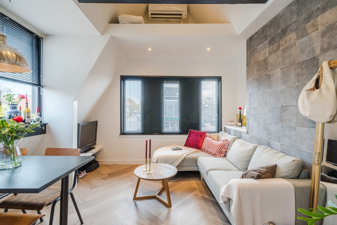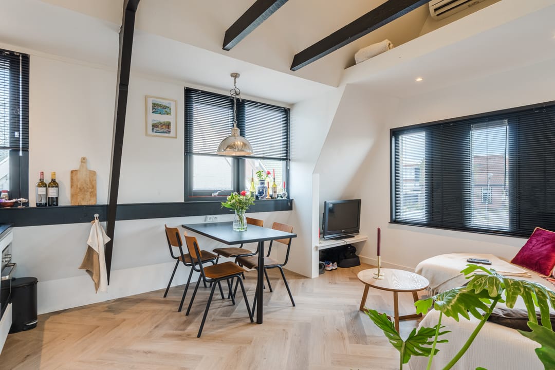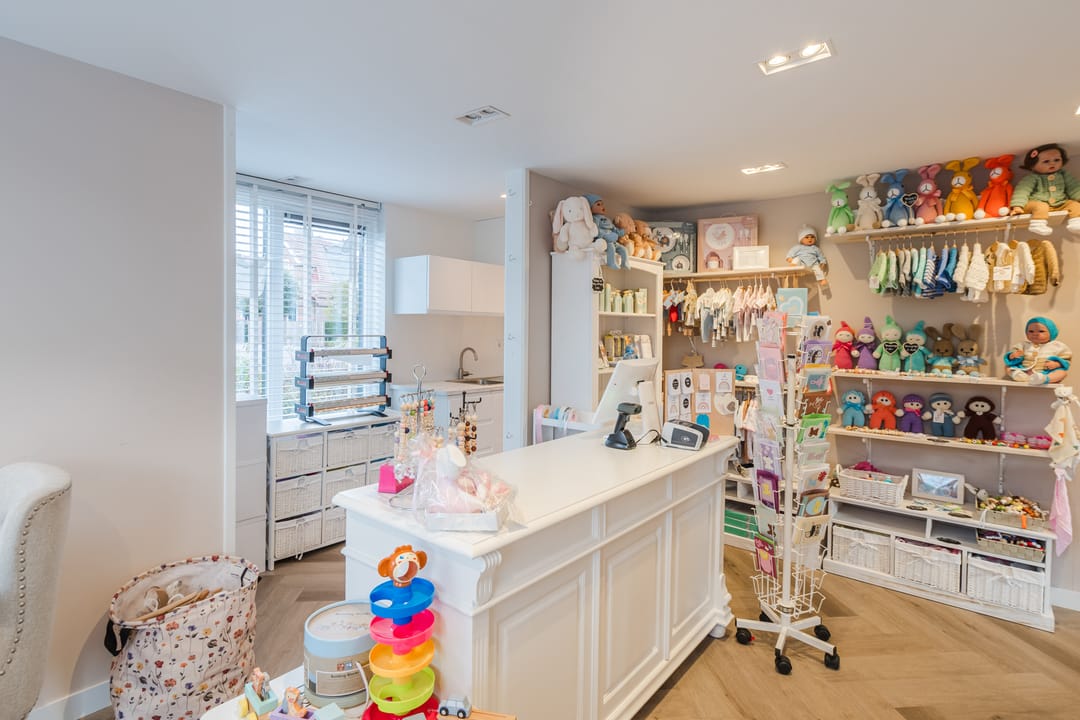 Bij binnenkomst aan de voorzijde betreed je de winkelruimte, die dankzij de grote ramen veel daglicht ontvangt en een prettige zichtlocatie biedt voor klanten. De ruimte is modern afgewerkt en beschikt over een klein keukenblok met koelkast en een aparte toiletruimte, wat het uitermate geschikt maakt voor commerciële doeleinden. De studio is bereikbaar via een aparte entree naast de winkel, en is ingericht met een lichte woonkamer, een moderne keuken met vaatwasser, koelvriescombinatie en een combi-oven, toiletruimte en achterin bevindt zich een doucheruimte met wastafel en een aansluiting voor een wasmachine en een ruimte voor een tweepersoonsbed. Deze indeling maakt de studio volledig zelfstandig en comfortabel voor wonen. De gehele woning wordt verwarmd en gekoeld middels een energiezuinige airco-unit, wat zorgt voor een aangenaam binnenklimaat in alle seizoenen.