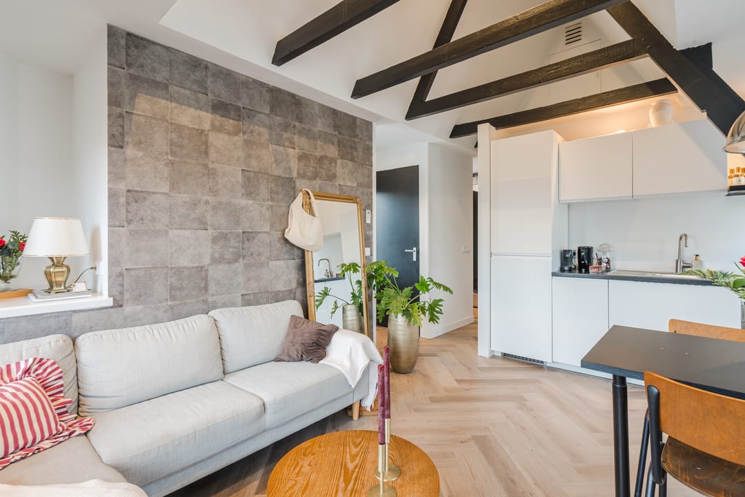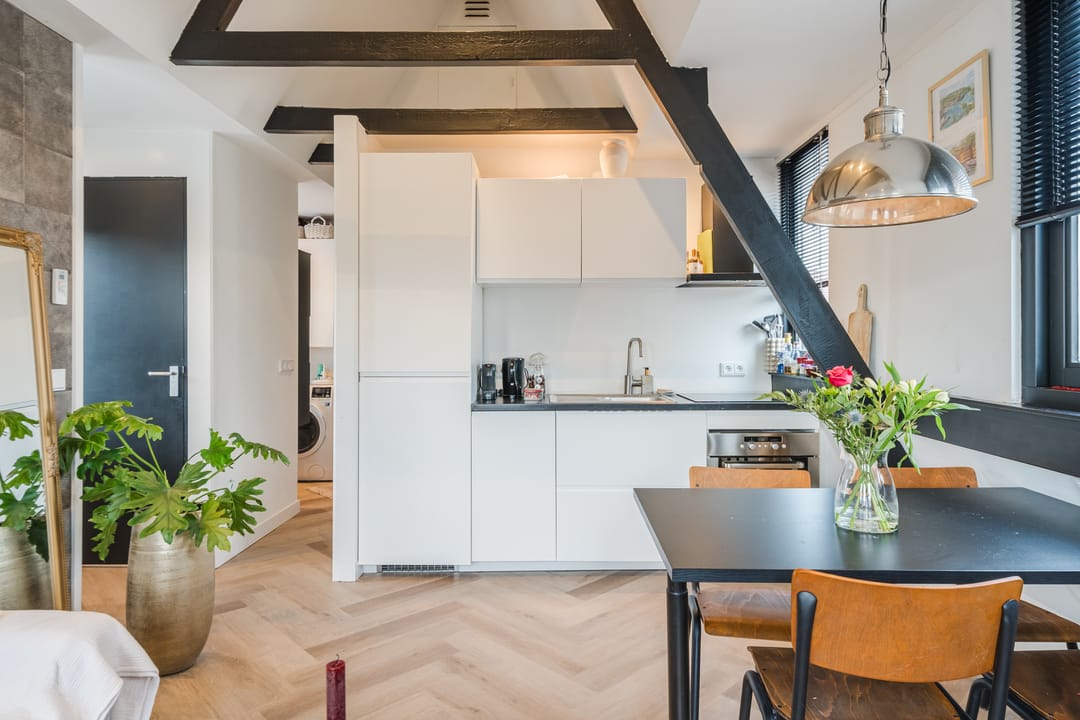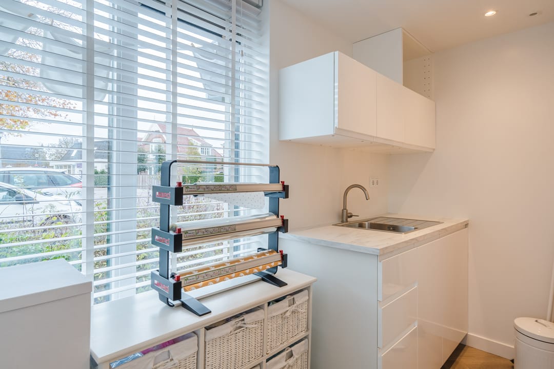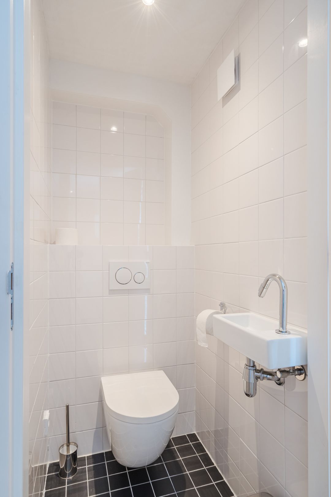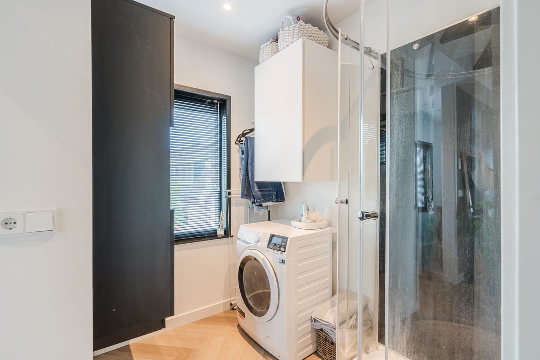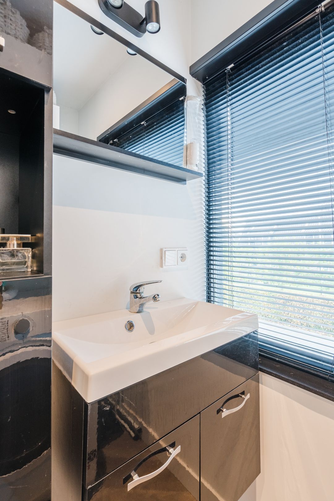 Bij binnenkomst aan de voorzijde betreed je de winkelruimte, die dankzij de grote ramen veel daglicht ontvangt en een prettige zichtlocatie biedt voor klanten. De ruimte is modern afgewerkt en beschikt over een klein keukenblok met koelkast en een aparte toiletruimte, wat het uitermate geschikt maakt voor commerciële doeleinden. De studio is bereikbaar via een aparte entree naast de winkel, en is ingericht met een lichte woonkamer, een moderne keuken met vaatwasser, koelvriescombinatie en een combi-oven, toiletruimte en achterin bevindt zich een doucheruimte met wastafel en een aansluiting voor een wasmachine en een ruimte voor een tweepersoonsbed. Deze indeling maakt de studio volledig zelfstandig en comfortabel voor wonen. De gehele woning wordt verwarmd en gekoeld middels een energiezuinige airco-unit, wat zorgt voor een aangenaam binnenklimaat in alle seizoenen.