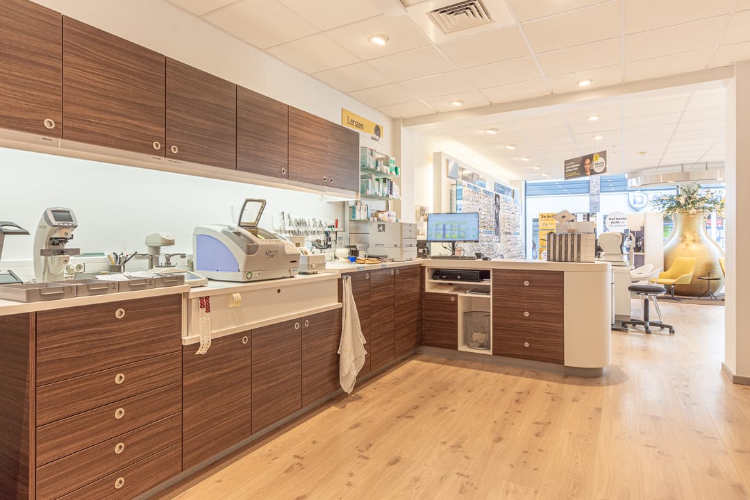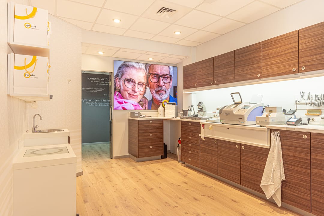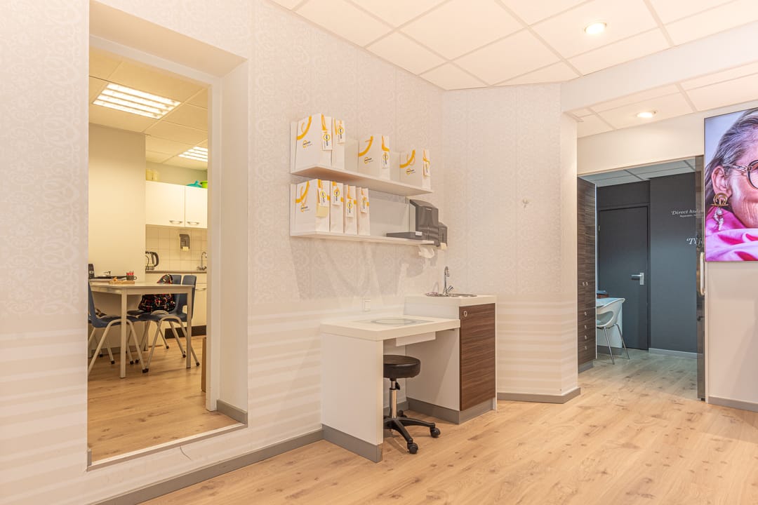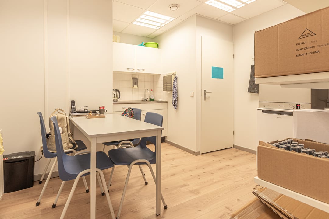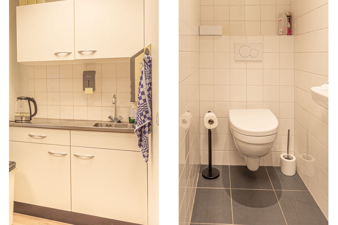 Winkelruimte, spreekkamer, toilet en kantine met pantry.
