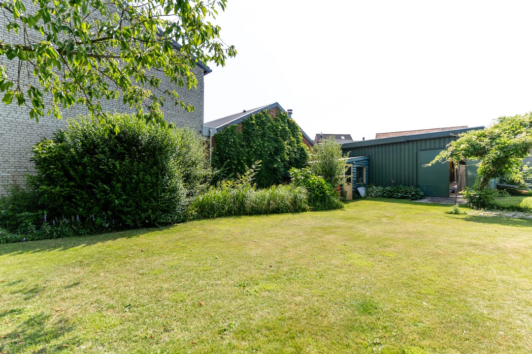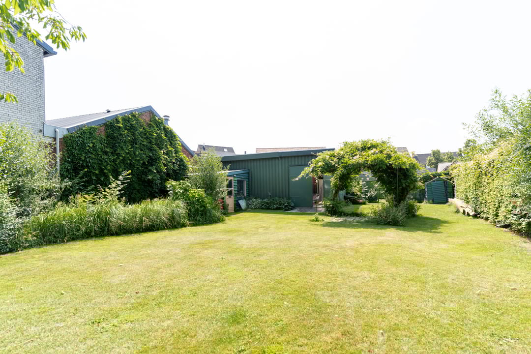 Naast het pand bevindt zich een oprit met toegang tot de loods en twee werkplaatsen. De twee werkplaatsen zijn toegankelijk via een houten schuifdeur. De loods heeft grote, openslaande houten deuren. Het geheel biedt volop ruimte en mogelijkheden. Aan de achterzijde van de loods tref je de tuin ingericht met een flink stuk gazon en diverse volwassen beplanting.