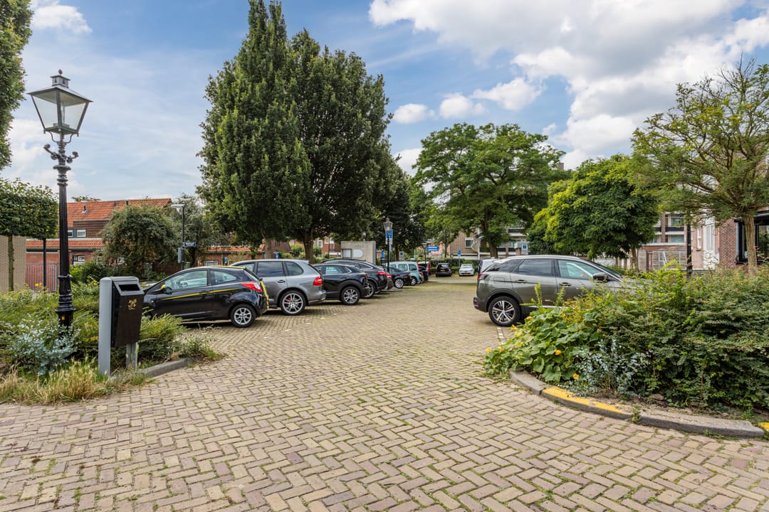 Drietal parkeerplaatsen op eigen terrein, voorts deels middels betaling/vergunningen parkeren langs de openbare weg of aangrenzend parkeerterrein aan het Mallegat.