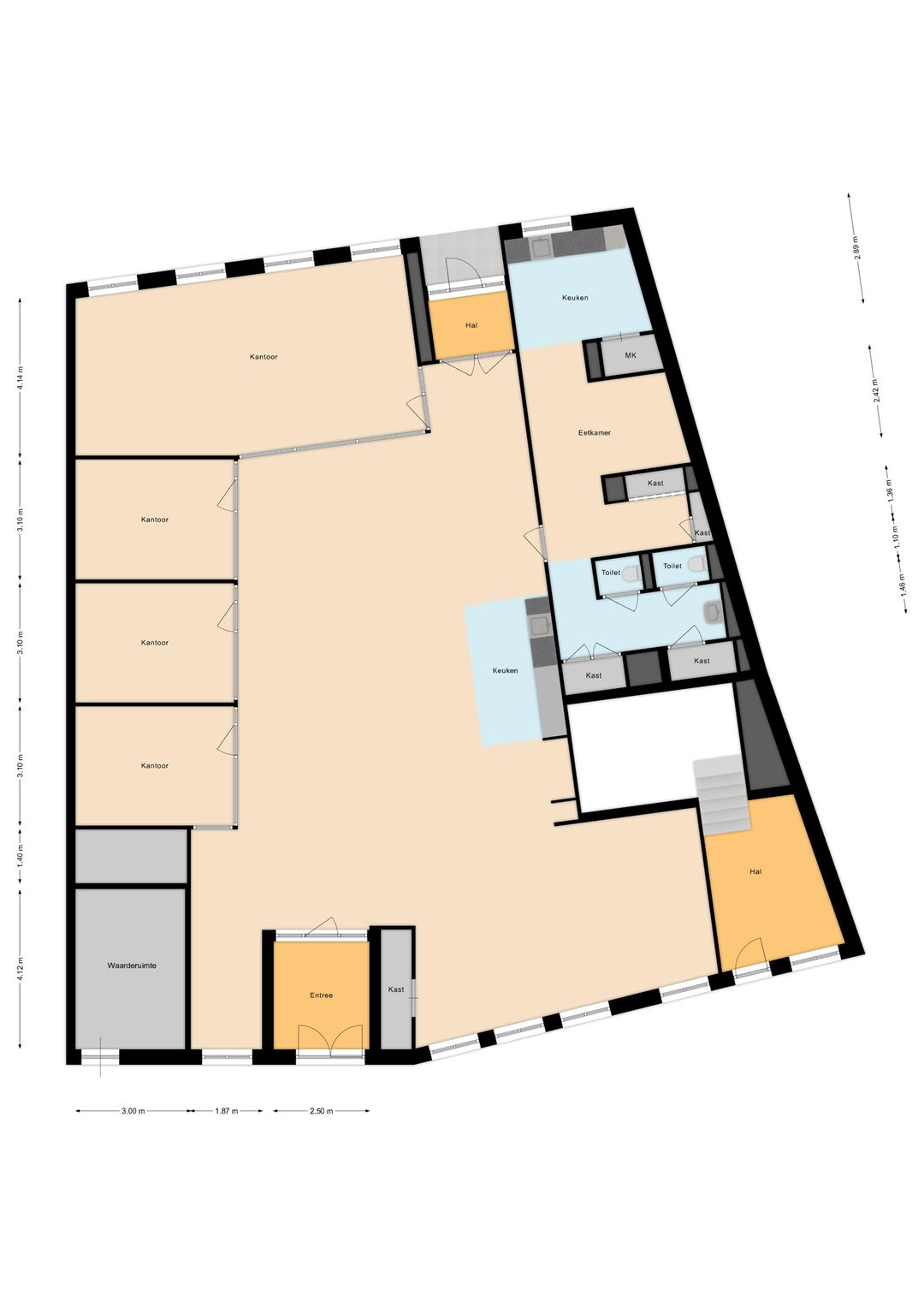 VVO van deze begane grond bedraagt ca. 272 m² en is toegankelijk vanaf zowel de zijde van de Herenstraat/Kerklaan als het Mallegat.