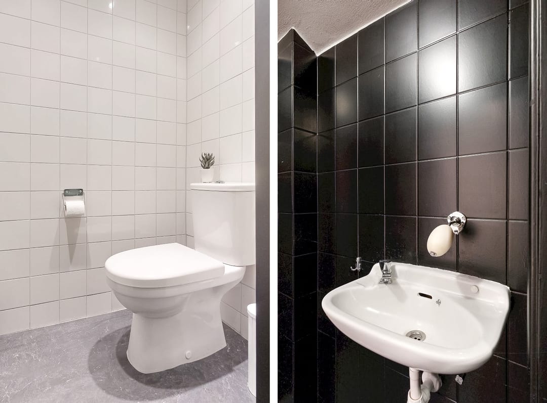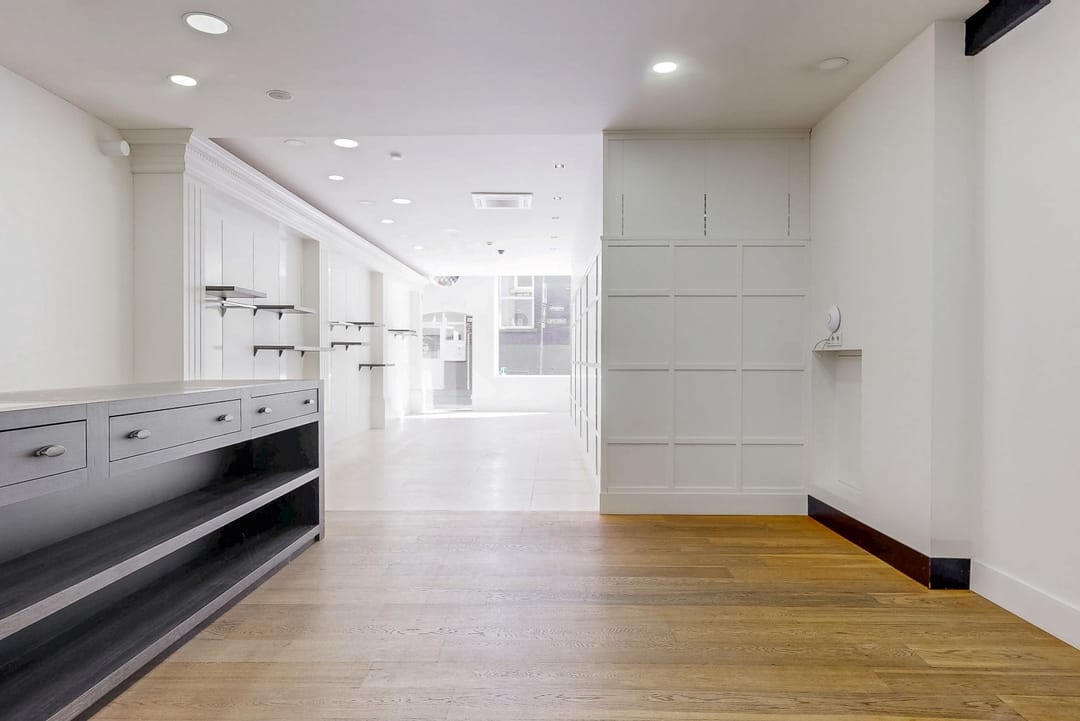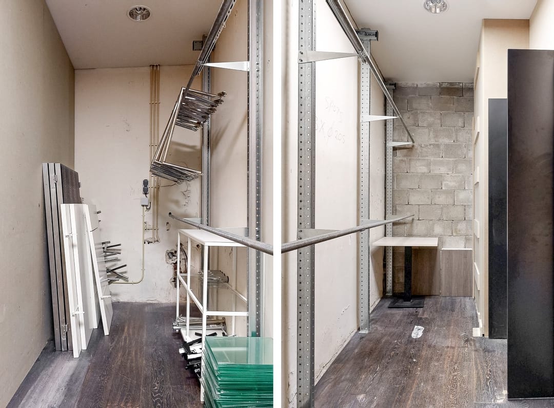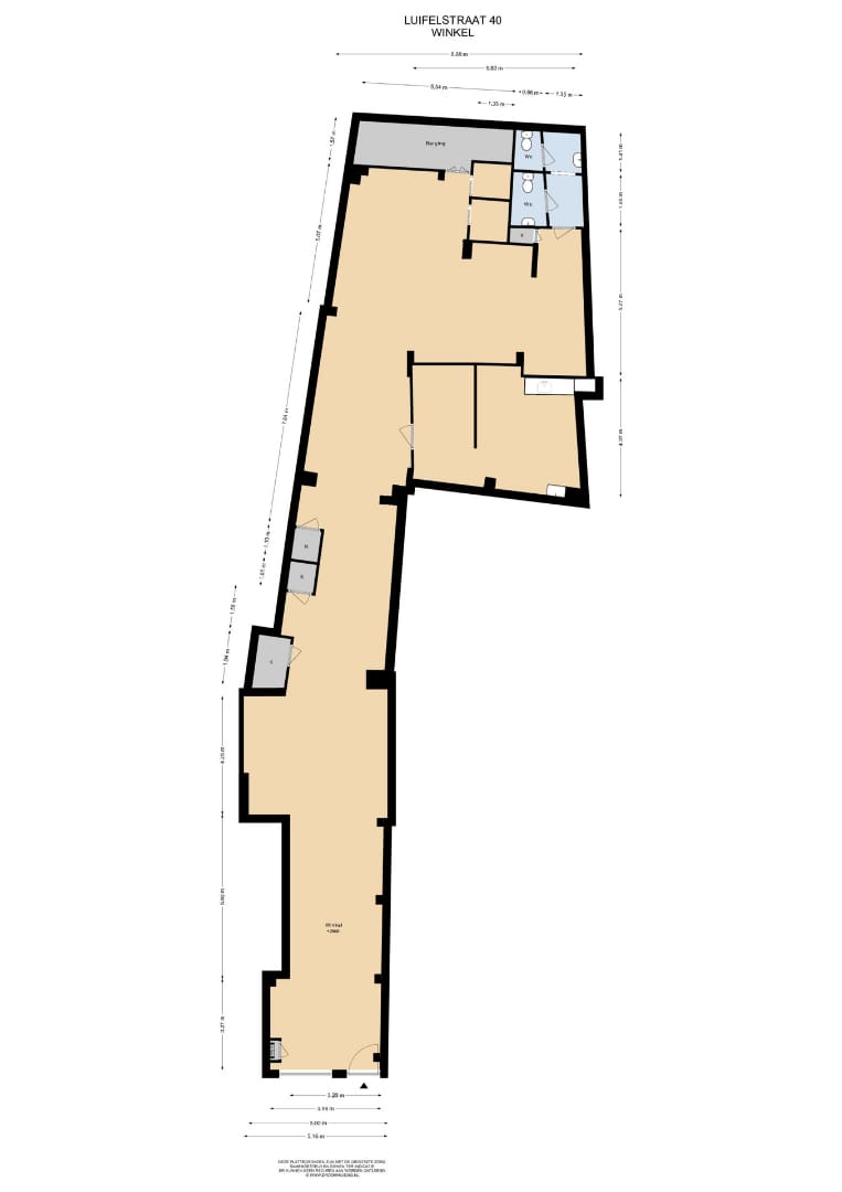 Achter de winkelruimte bevinden zich een toilet, kitchenette en magazijnruimte.