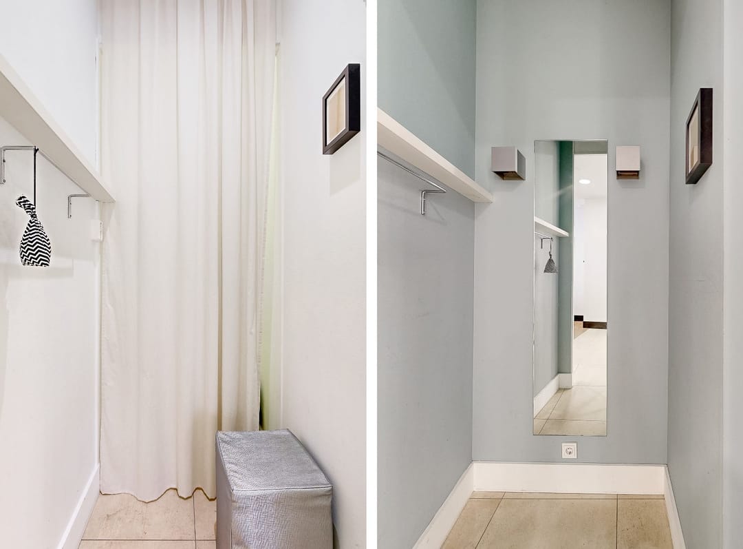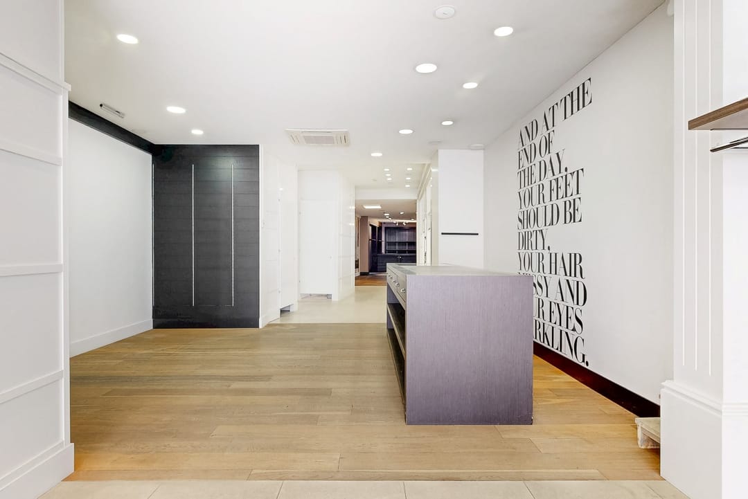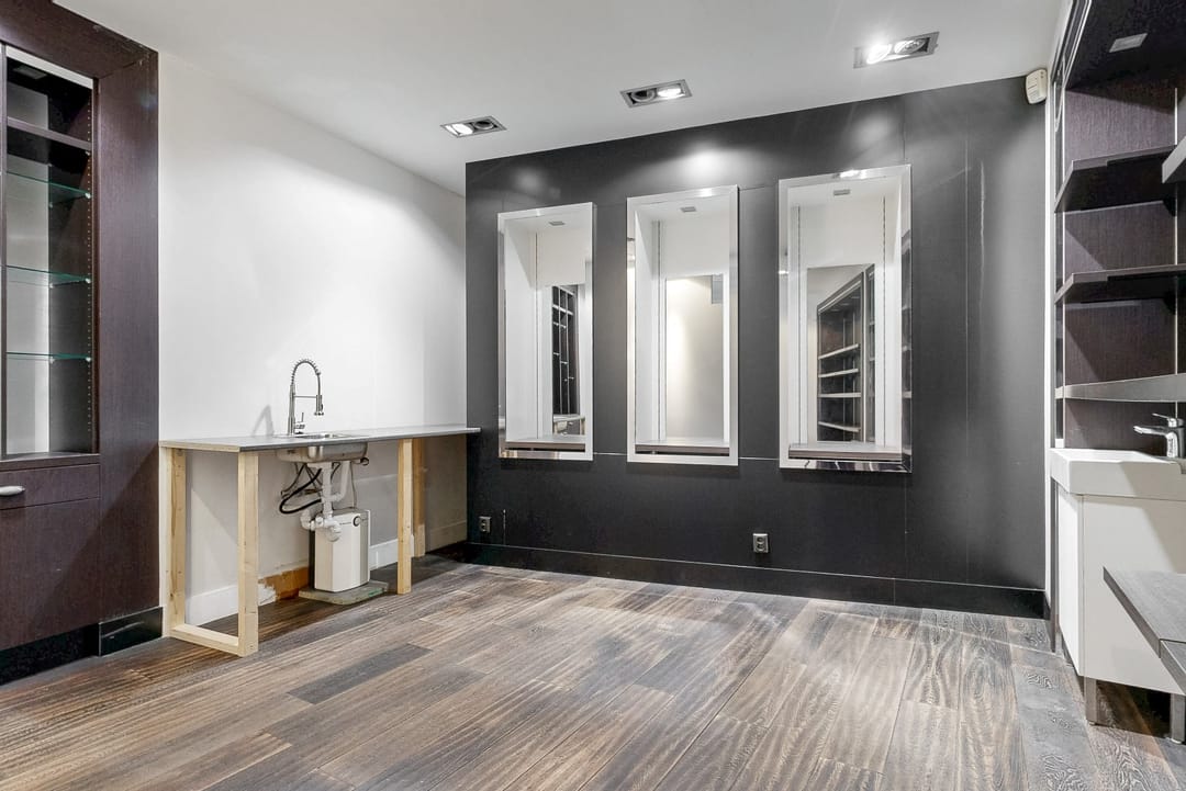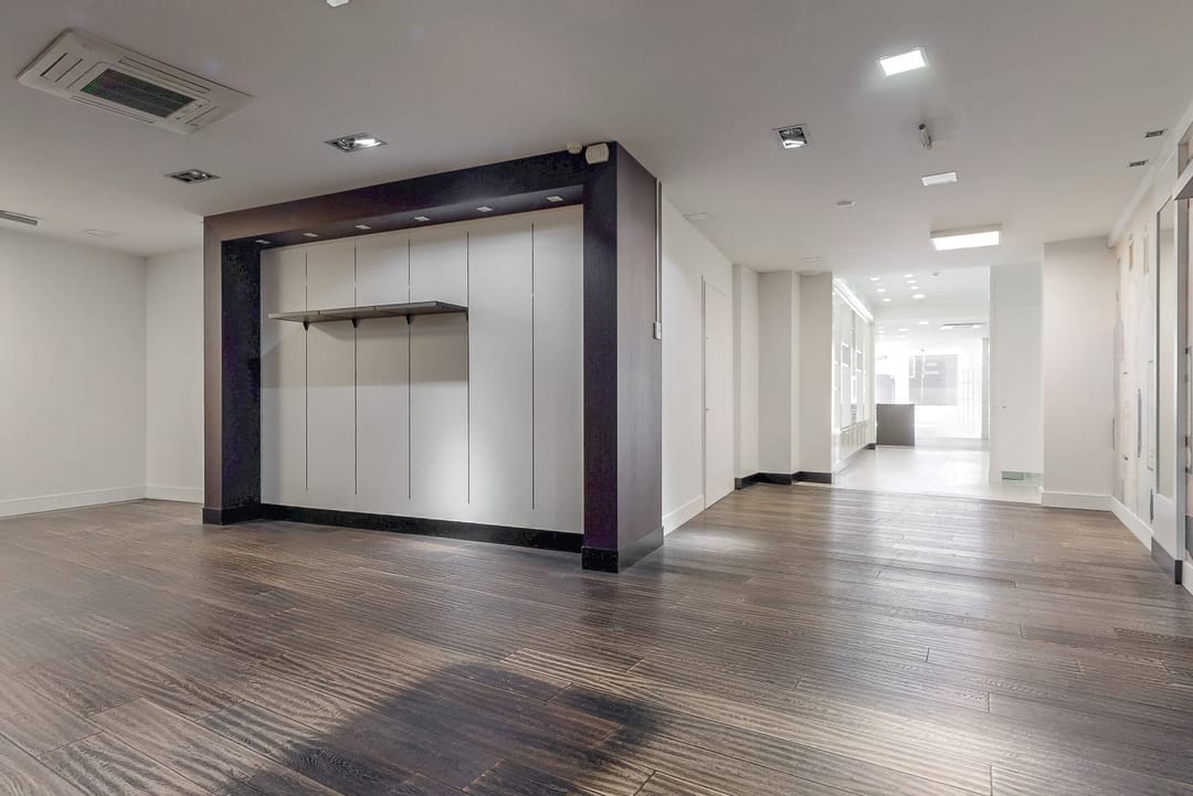 De winkel is luxe afgewerkt en beschikt over veel vaste kasten.
