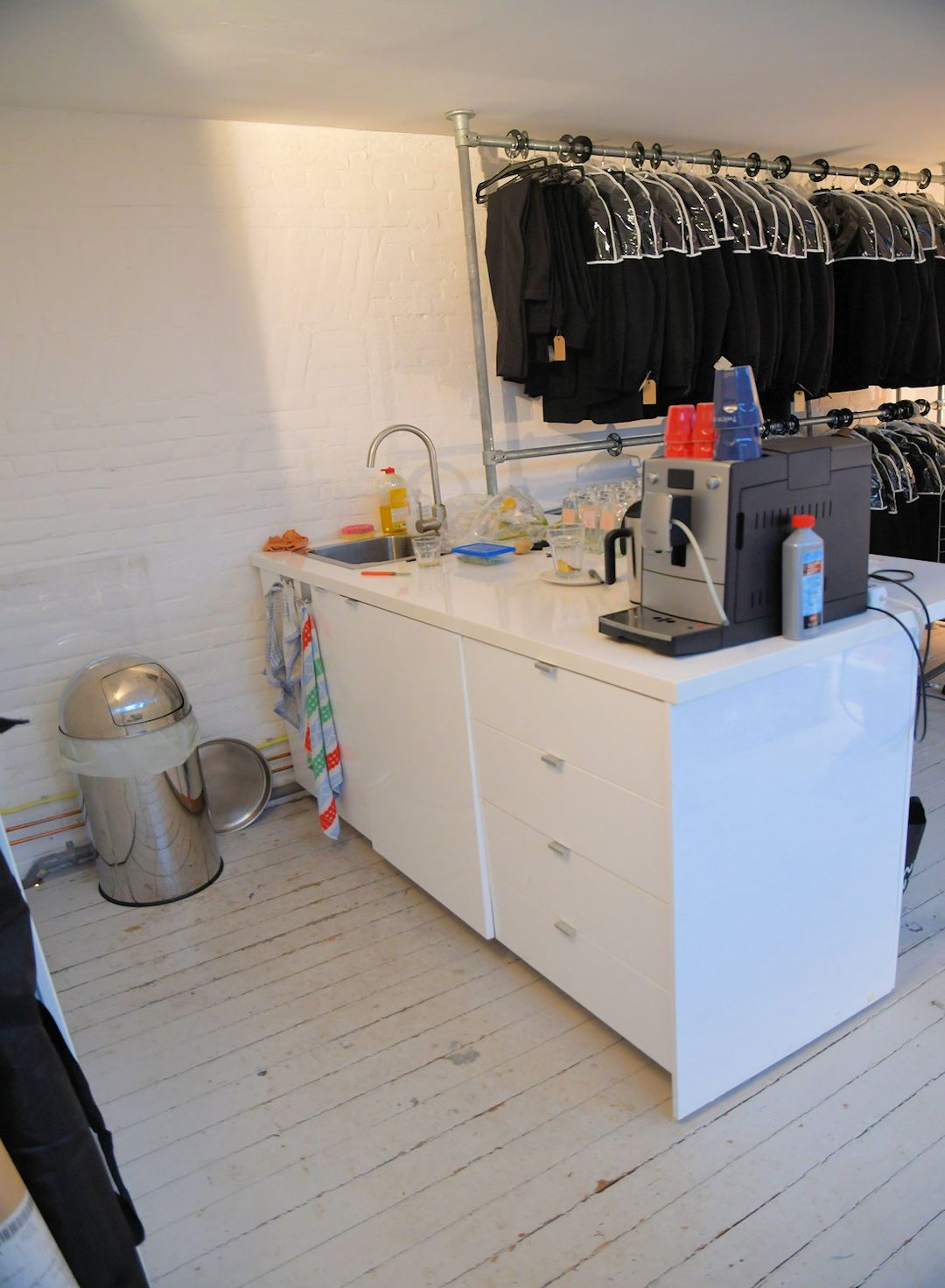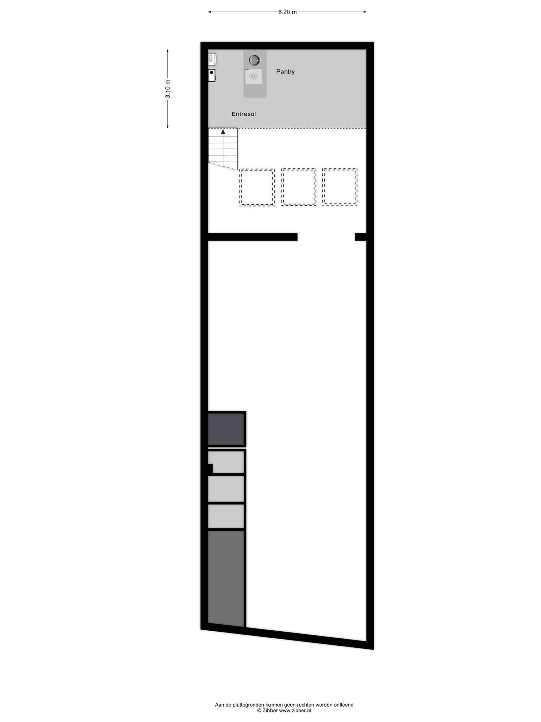 entresol (plafondhoogte ca. 2,3) ca. 6.2 x 3.1 met pantry vzv koelkast en spoelbak met mengkraan en vaste kast met opstelplaats c.v. en m.v..