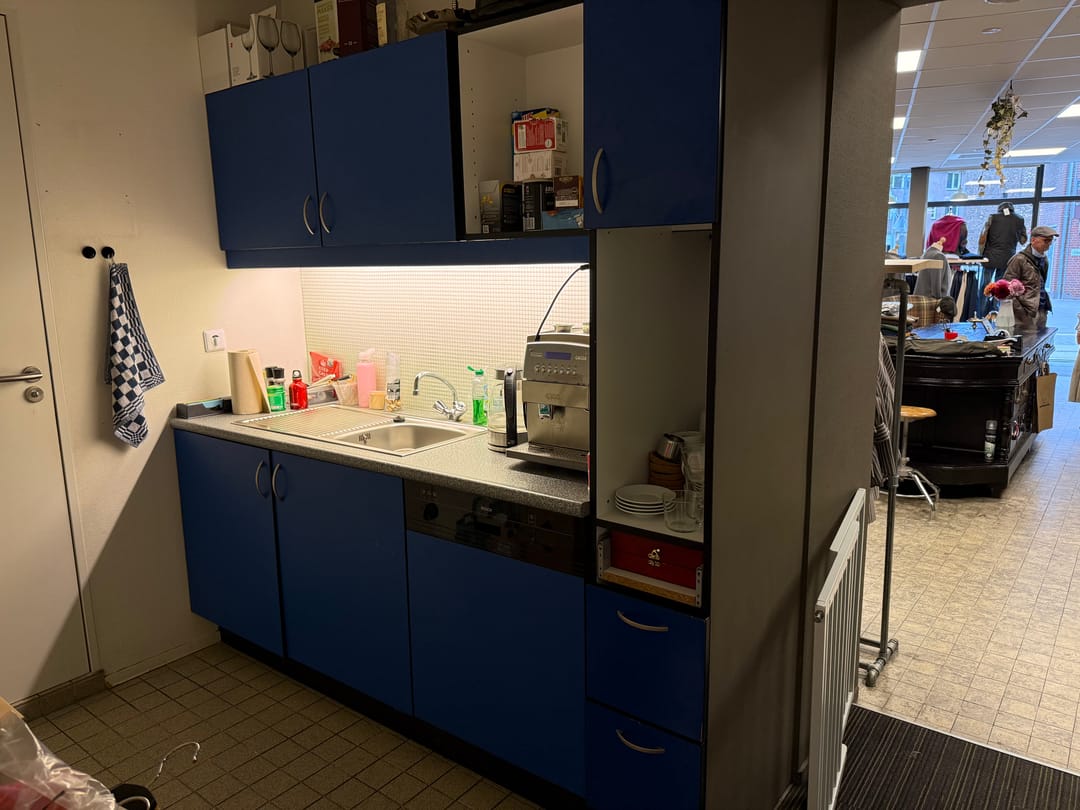 - Kantoor/personeelsruimte/opslagruimte (ca. 16 m²) thans in gebruik als opslagruimte