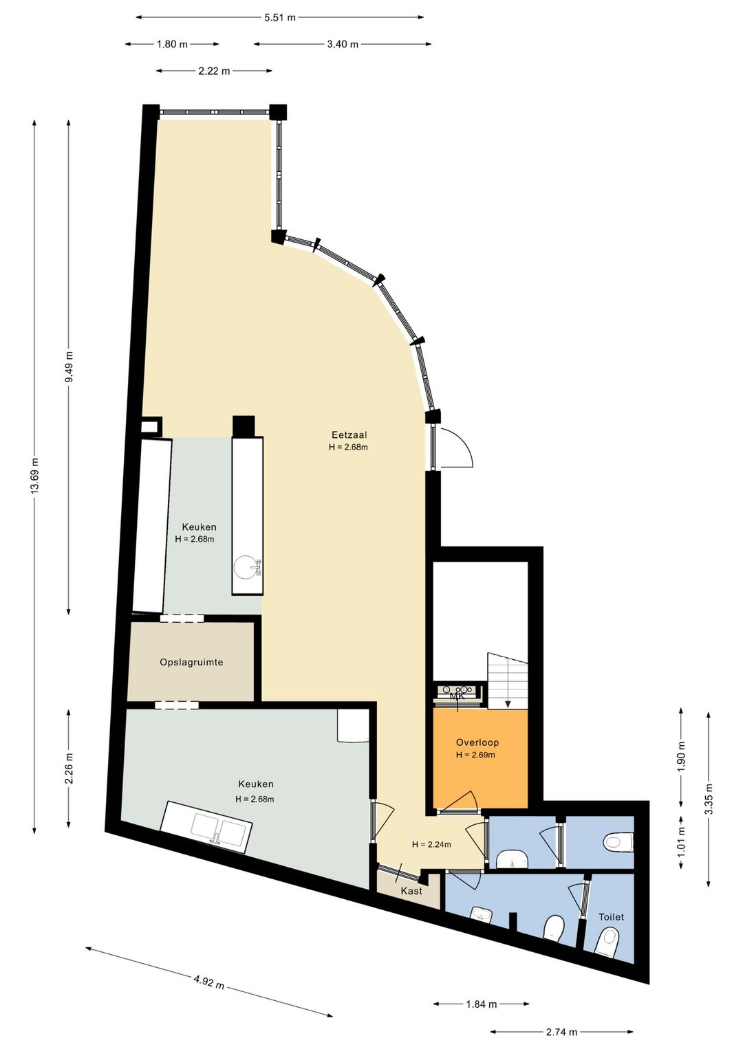 Commerciële ruimte met een oppervlakte van ca. 85 m² (vvo). Het front van de winkel is ca. 5,5 m.