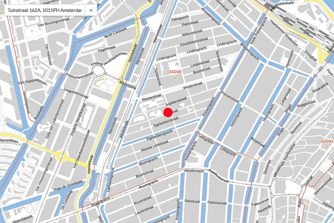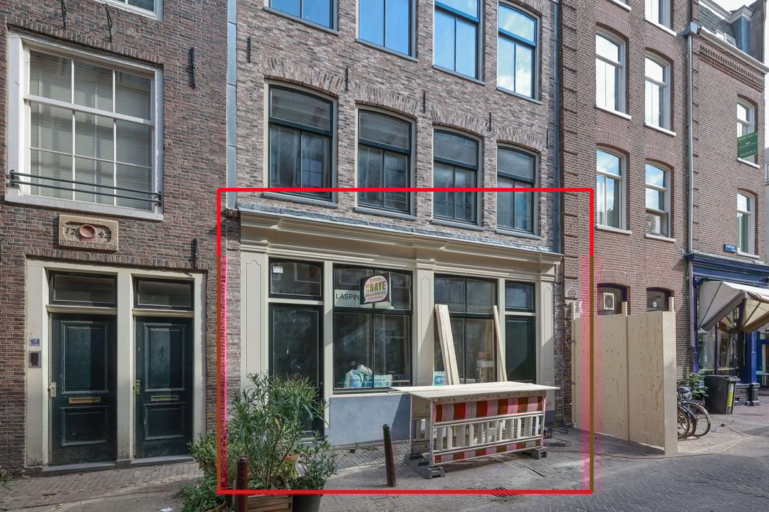 Nieuwe winkelruimte in de Jordaan nabij de hoek met de Tweede Tuindwarsstraat naast pizzeria La Perla en tegenover het Oud Hollandsch Snoepwinkeltje in de periferie van de gezelligste horecastraat van de buurt.