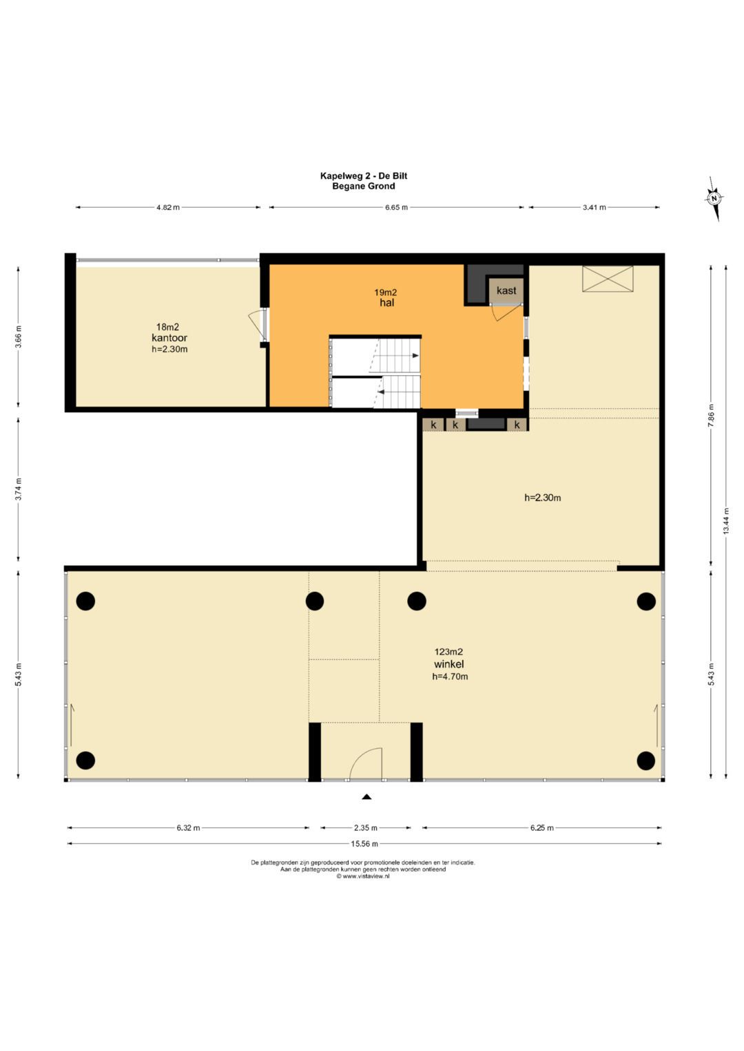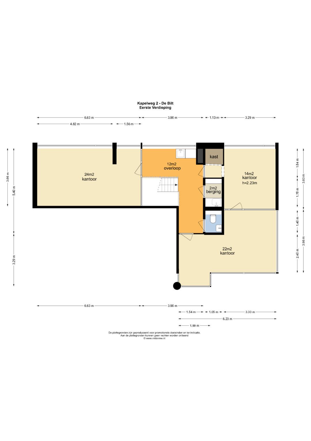 Dit zestigerjaren pand (gemeentelijk monument) heeft op de begane grond een netto verhuurbare bedrijfsvloeroppervlakte (VVO) van 123m² met een halruimte van 19m² en kantoorruimte van 18m²! Op de eerste verdieping bevinden zich verder een ruime overloop met bergruimten, toilet, pantry en een drietal in grootte variërende kantoorruimten van resp. 14m², 22m² en 24m². Tenslotte zijn er een tweetal kelderruimten (hoogte 2.43m) van resp. 10m² en 26m²