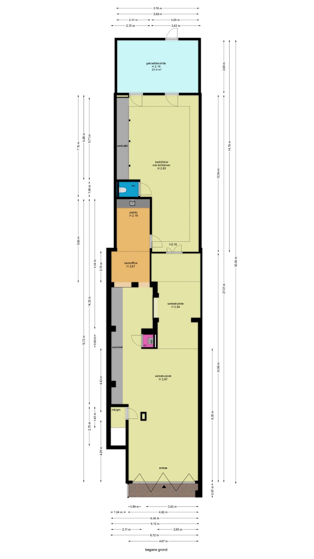 De winkel heef een frontbreedte van ca. 5,5 m1.