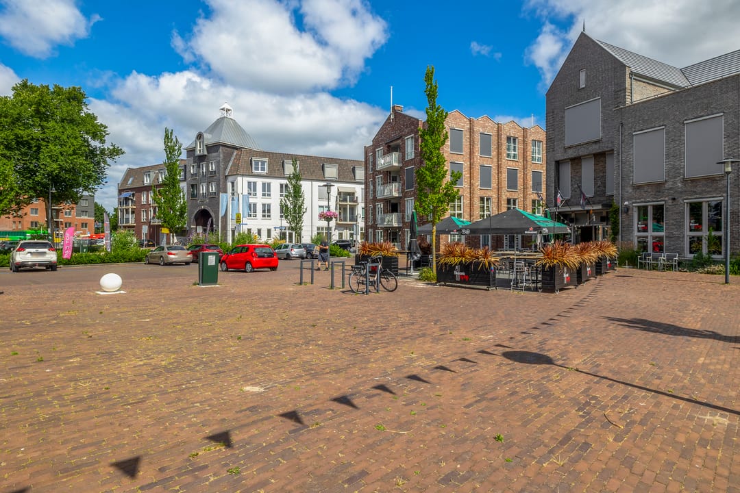 Parkeervoorziening: in het winkelcentrum kan kosteloos worden geparkeerd en wordt met een blauwe zone gereguleerd.