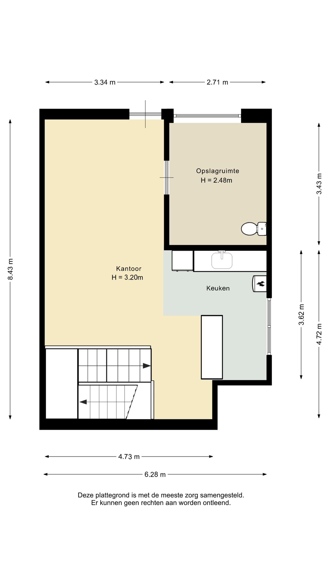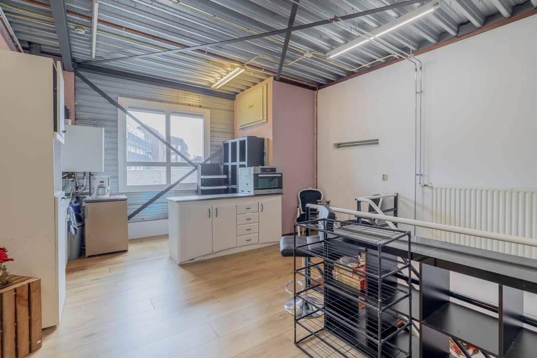 1e verdieping: circa 49 m² opslag met kantoor, bereikbaar met een trap en een goederenlift