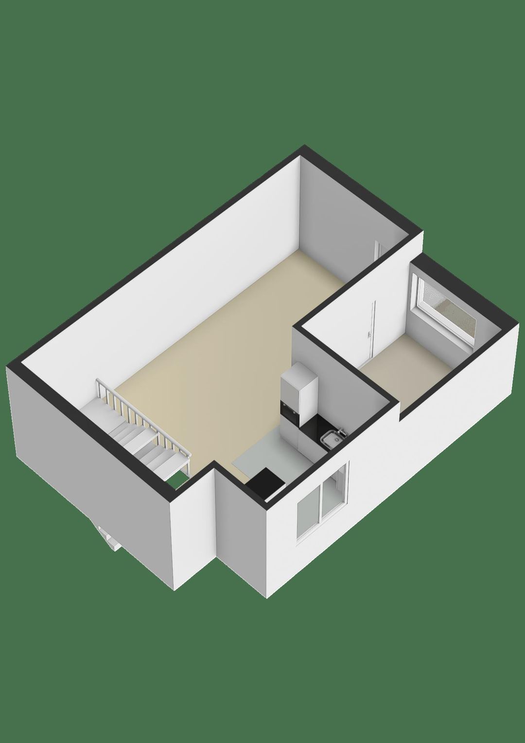 Uitsluitend het casco wordt verhuurd, in de huidige staat, voorzien van o.a.: