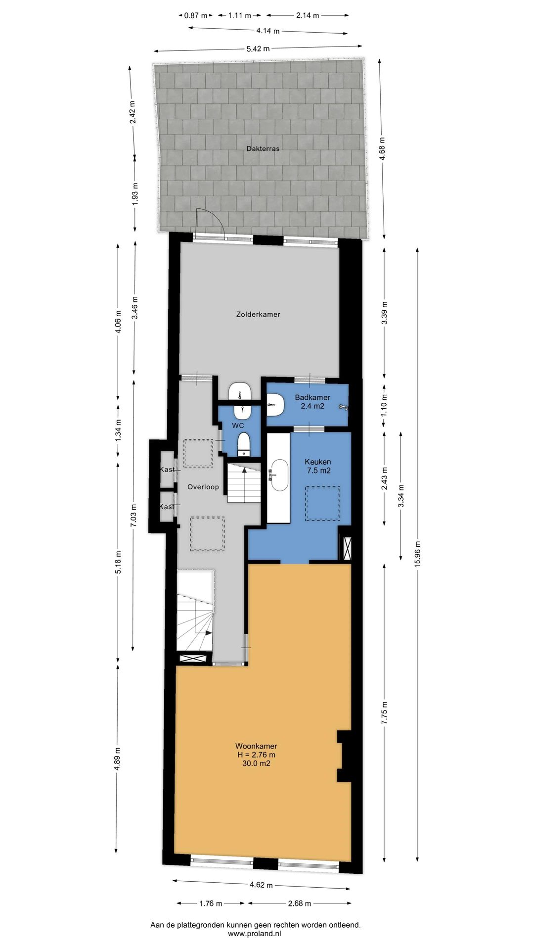 - De verdiepingen: De verdiepingen hebben een totale oppervlakte van circa 150 m² en is bereikbaar vanuit de winkelparterre. Deze is beschikbaar voor aanvullende werkzaamheden voor de parterre.