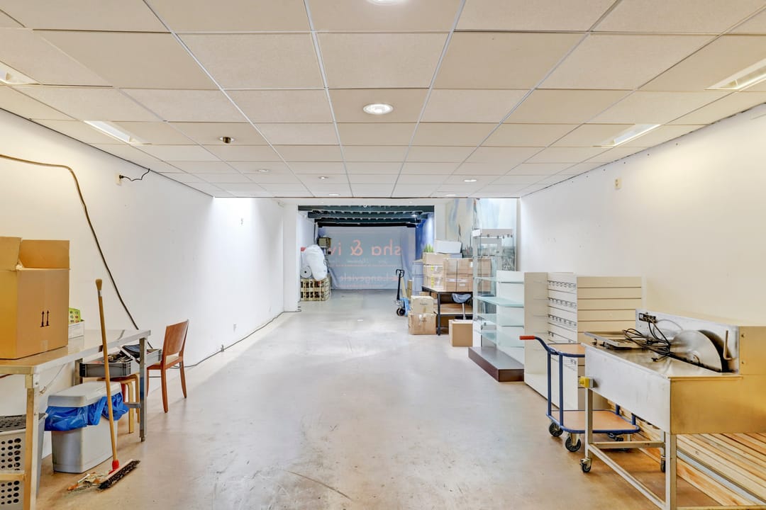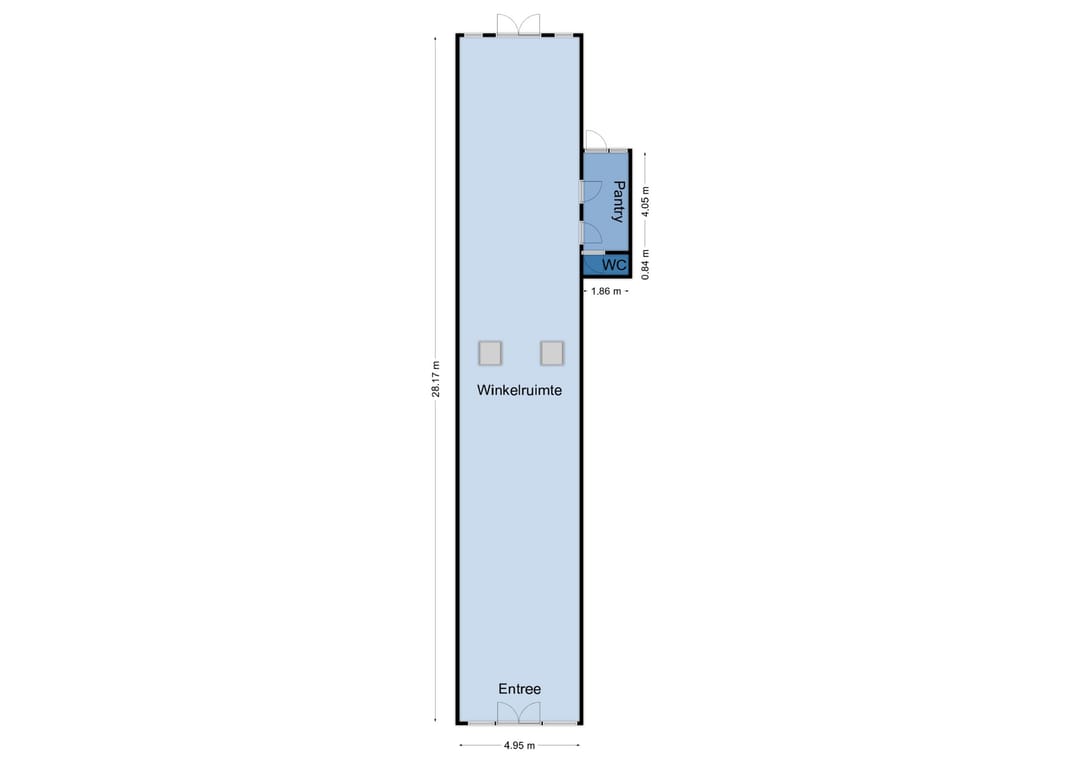 Om de gehele winkelruimte te voorzien van natuurlijk daglicht, zijn er in het dak twee dakramen geplaatst. Ook is er een (gedeelde) achterom wat het laden en lossen aan de achterzijde mogelijk maakt. Zowel via de achterzijde als vanuit de winkelruimte zijn de keukenopstelling en de toiletvoorziening te bereiken.