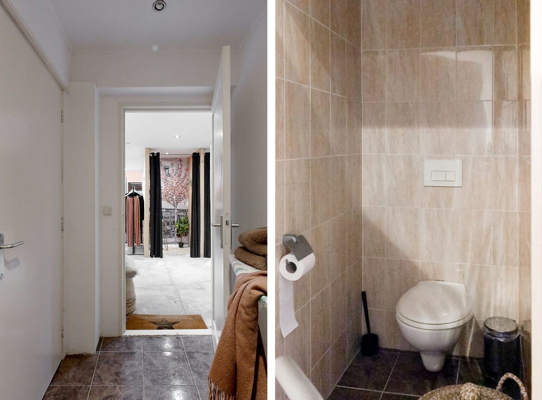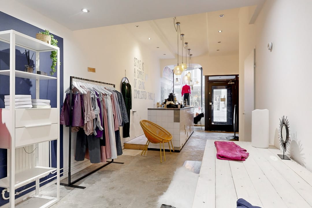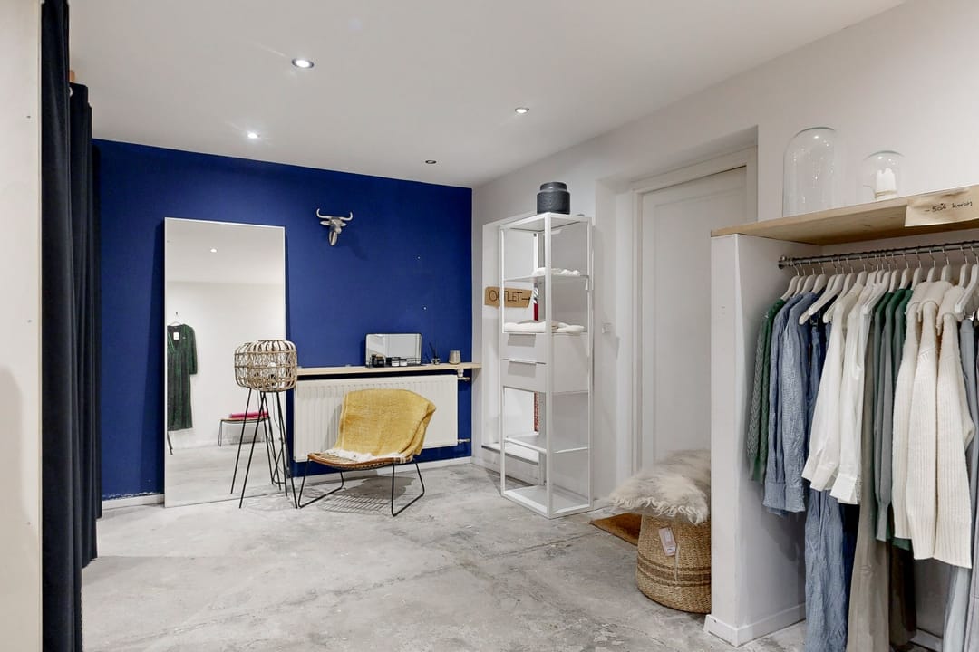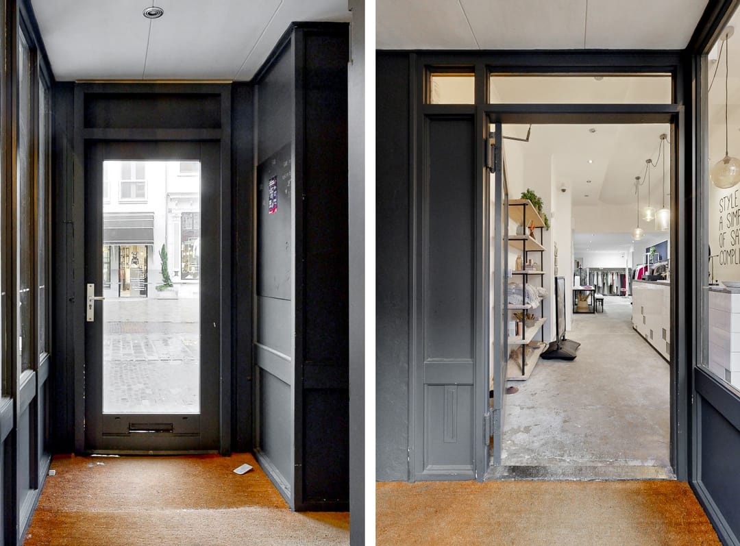 Entree met toegang tot de winkelruimte. Aan de voorkant bevinden zich twee ramen welke ideaal zijn voor het gebruik als etalage. De winkelruimte is ingedeeld in een grote ruimte, achterin de winkelruimte bevinden zich twee paskamers en de toegang tot de 2 toiletten en opslagruimte. In de opslagruimte bevindt zich een pantry.