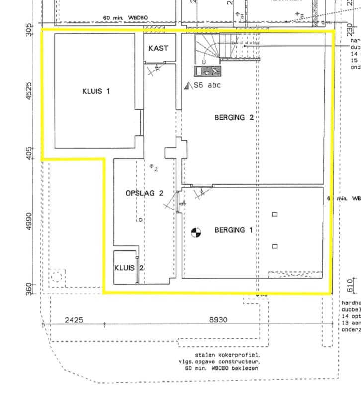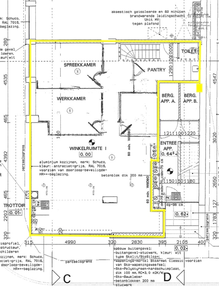 Indeling object : circa 100 m² VVO winkel- / kantoorruimte met pantry en toilet op begane grond en ca. 100 m² VVO magazijnruimte in het souterrain.