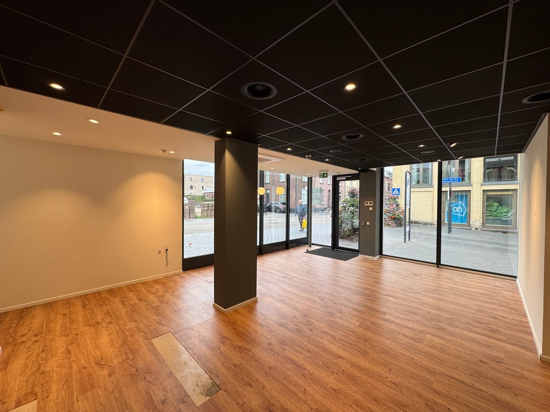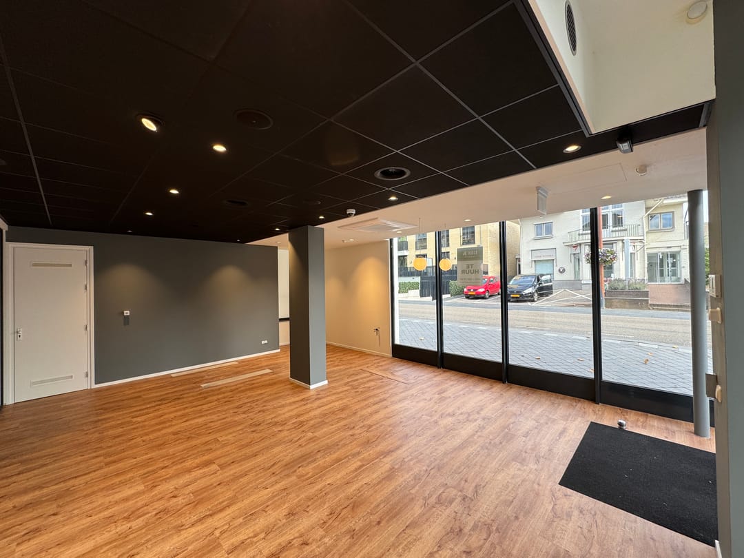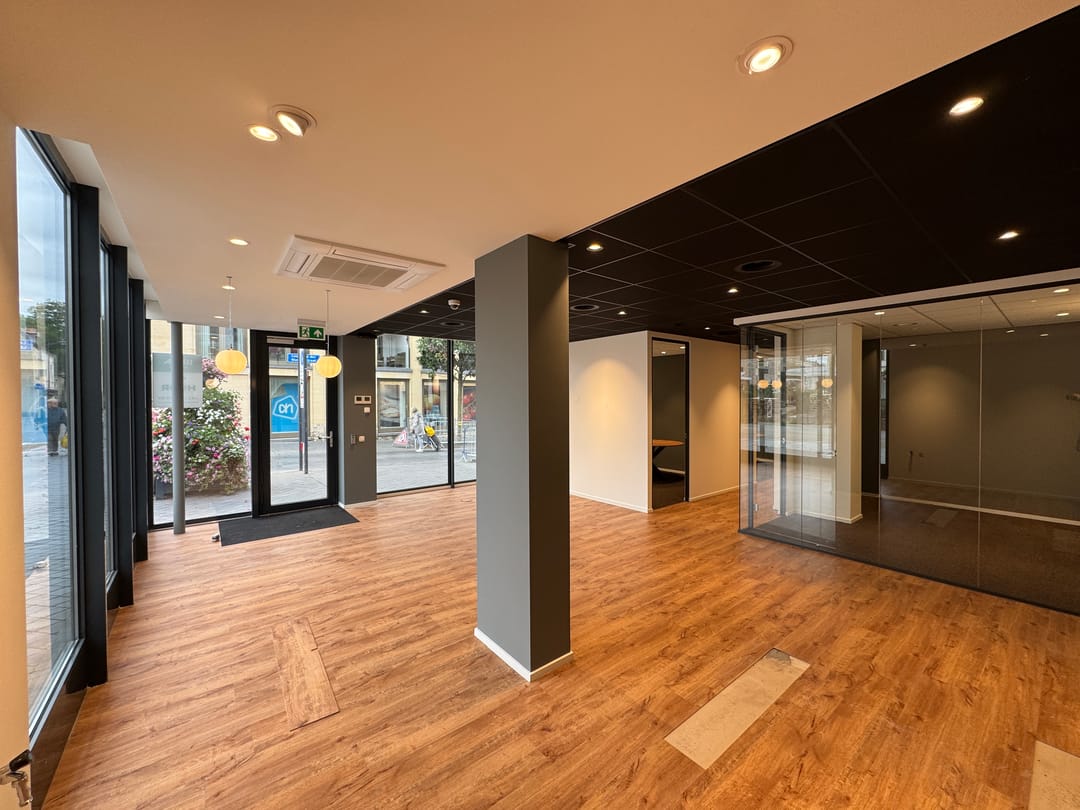 Te huur : ca. 100 m² BVO winkel- / kantoorruimte op begane grond en ca. 100 m² VVO magazijnruimte in het souterrain.