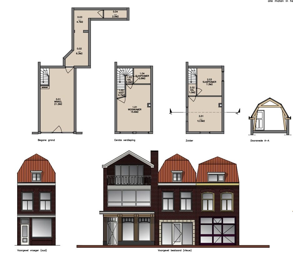 - Een nog te creëren bovenwoning verdeeld over twee lagen: verrassend veel ruimte voor een comfortabele indeling met woonkamer, keuken en meerdere slaapkamers. Het totaal beslaat ca. 41 m² GO.