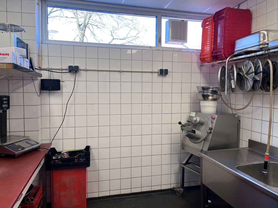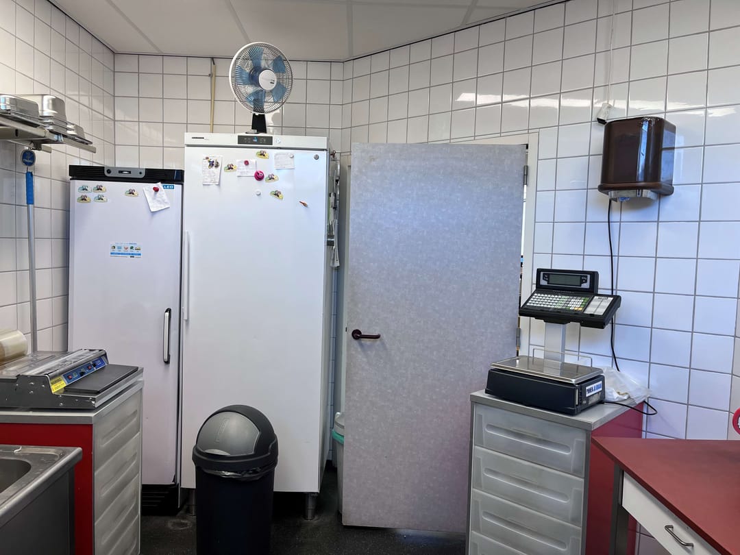 Begane grond: Winkel met aan de voorkant een zware metalen gecoate pui met 2 openslaande deuren en aan de achterkant een achteringang met elektrisch rolluik, snijkeuken, winkelruimte met eigen winkelpui (kunststof) met een rolluik aan de binnenzijde, kantoor, magazijn (met opstelplaats voor koelcel) toilet, pantry, 2e achteringang.