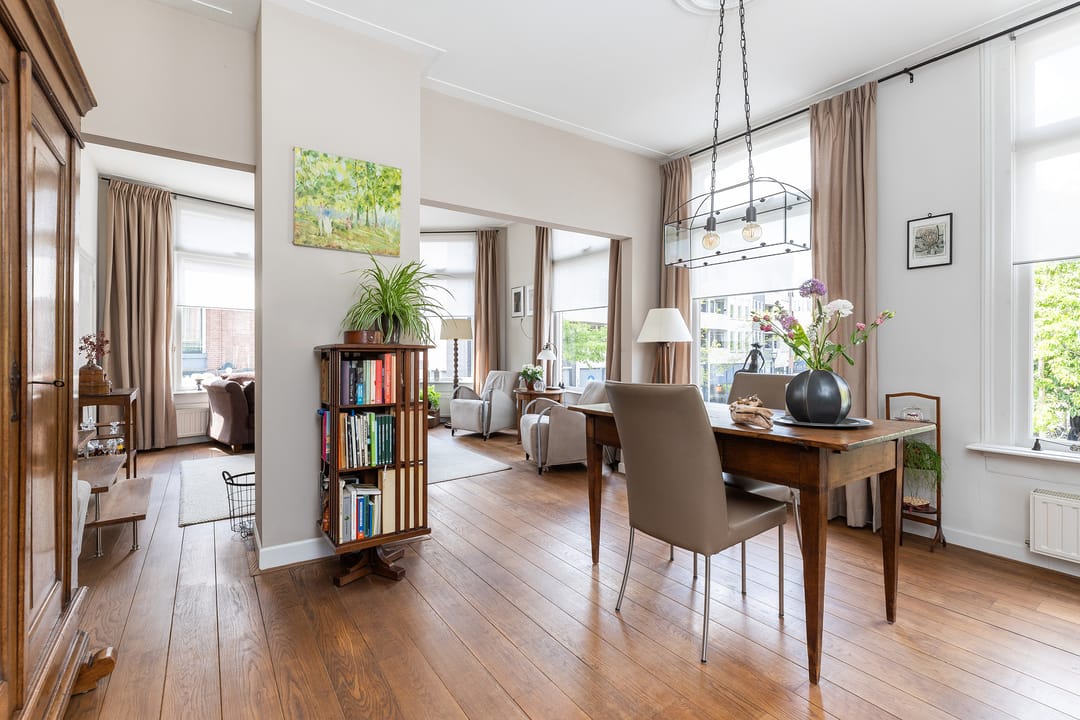 Omdat het pand is gelegen op een hoek, beschikt deze over veel daglicht en uitzicht naar drie zijden. Vanwege deze kwaliteiten is het dus heel goed mogelijk om de speelse en royale bovenwoning voor meerdere doeleinden tegelijk te gebruiken.