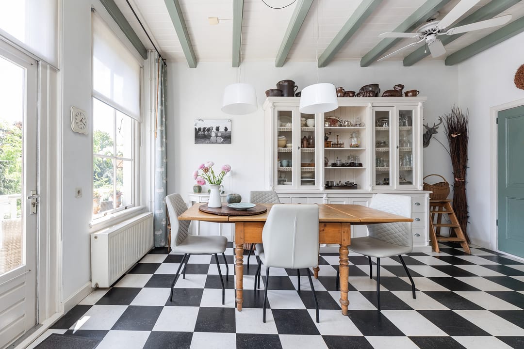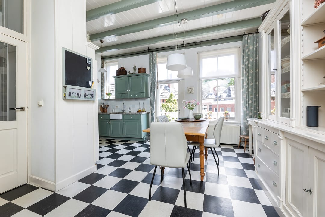 - De keukenvloer is uitgevoerd in hoogwaardige vinyl vloerbedekking.
