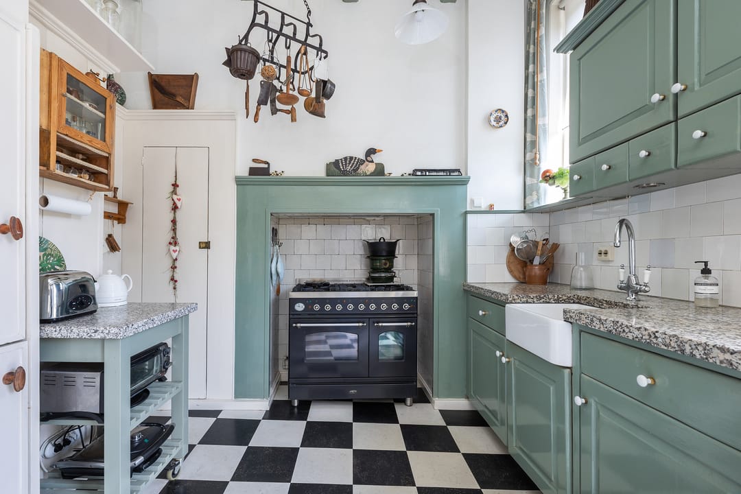 - De achterwanden zijn voorzien van authentiek tegelwerk (witjes), de deurgrepen als porseleinen knoppen