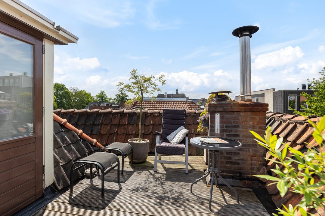 Het balkon op de 1e woonlaag kijkt uit over het groen van de tuinen van de Walstraat terwijl het mooie dakterras vrij uitzicht over het Gasthuisplein geeft, maar ook veel privacy biedt.