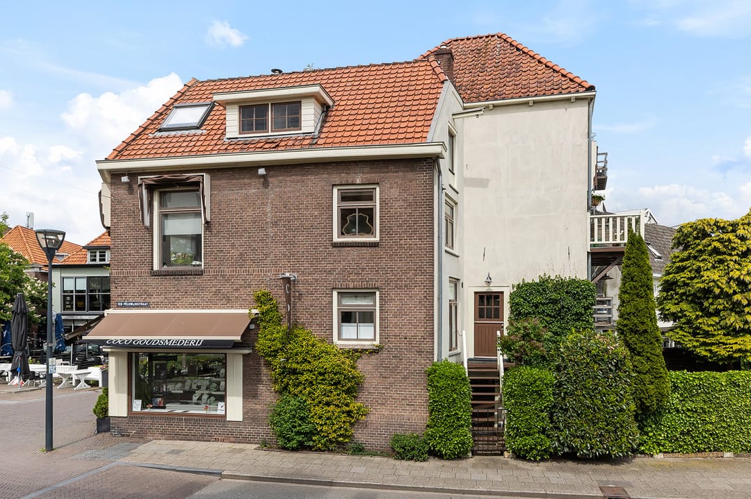 Op de hoek van het Gasthuisplein | Ter Pelkwijkstraat bieden wij deze bijzonder fraaie stads-bovenwoning mét tuin én bijbehorende (verhuurde) winkelruimte aan.