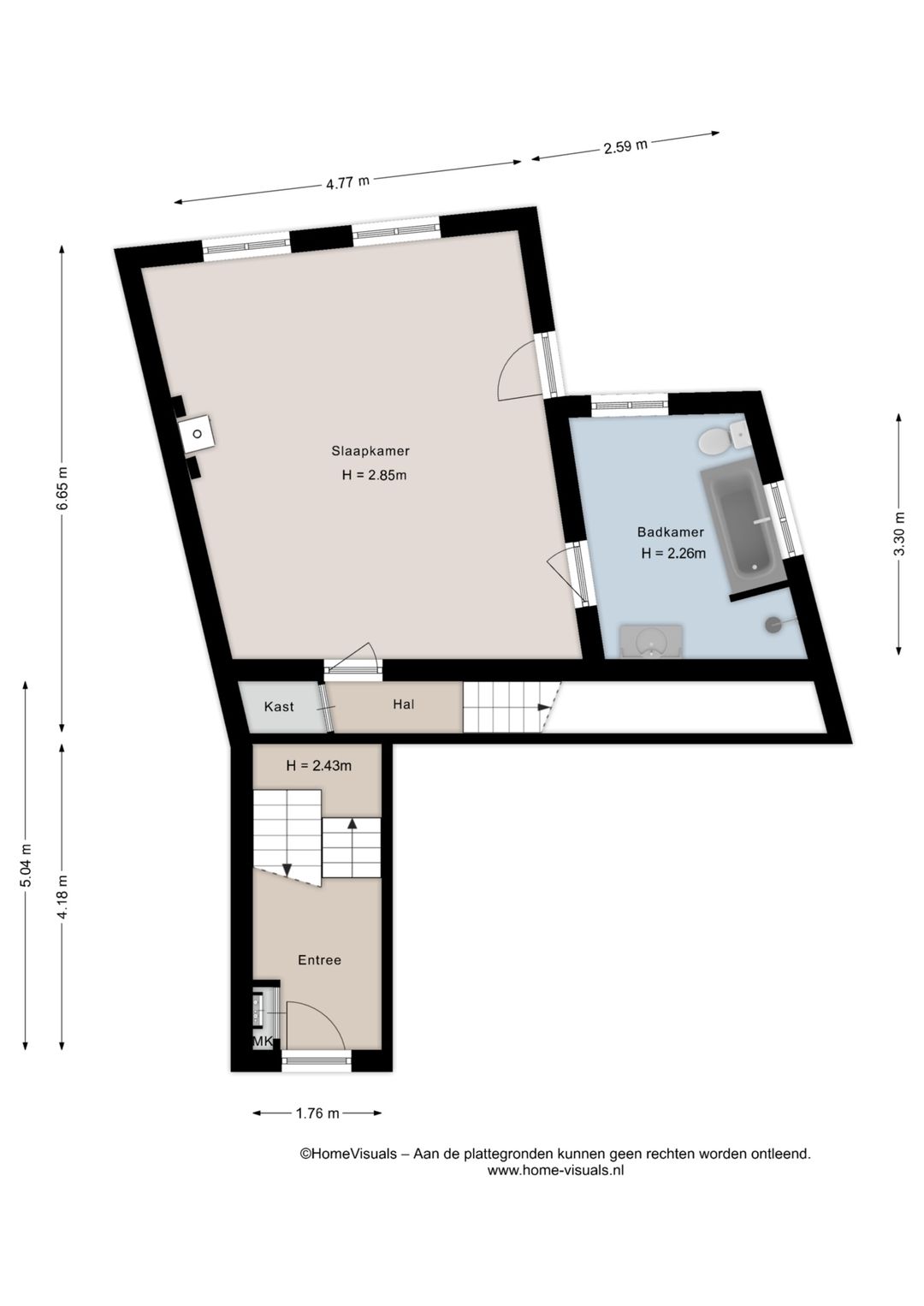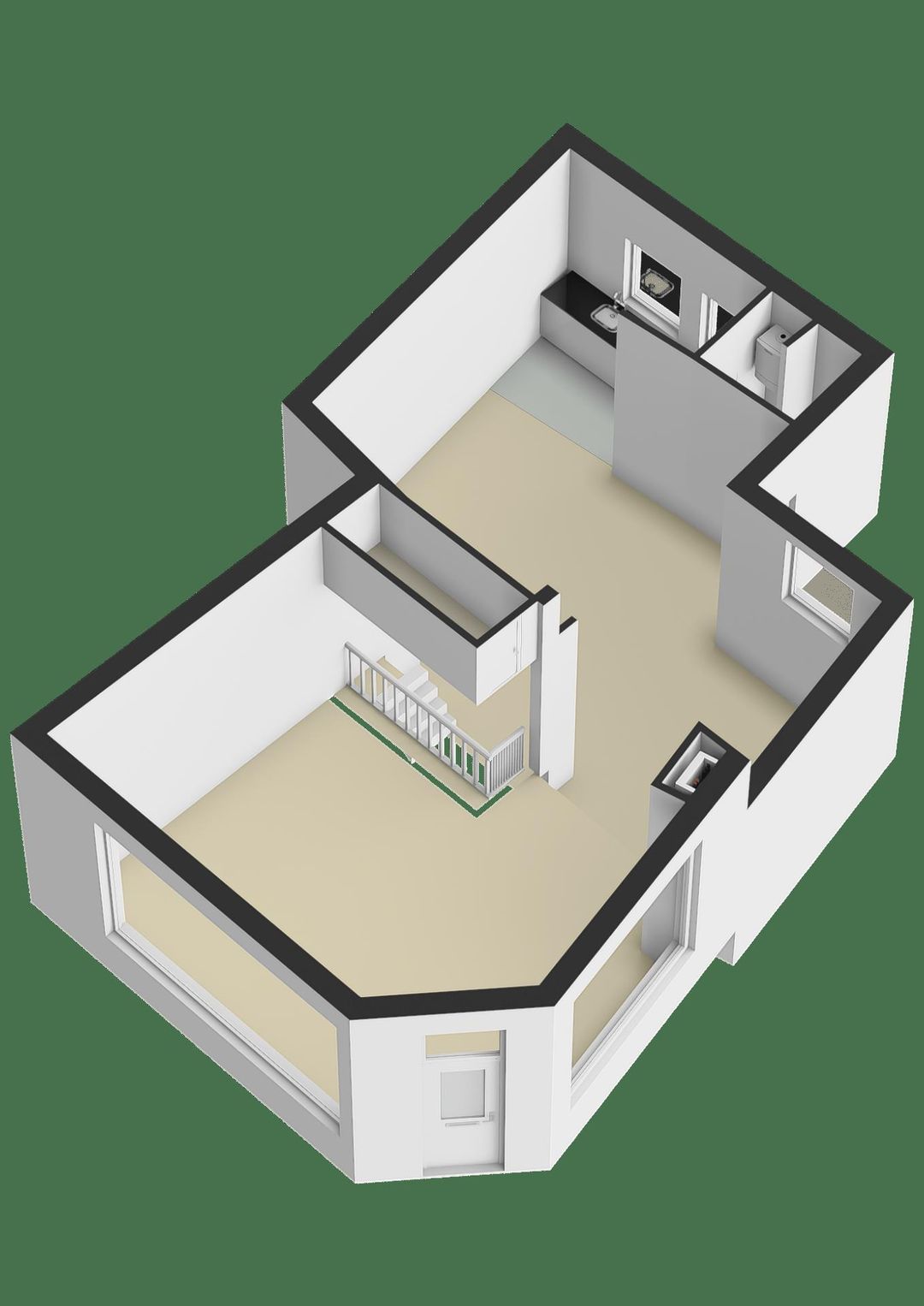 - Entree aan achterzijde via trap toegang tot slaapkamer/studio