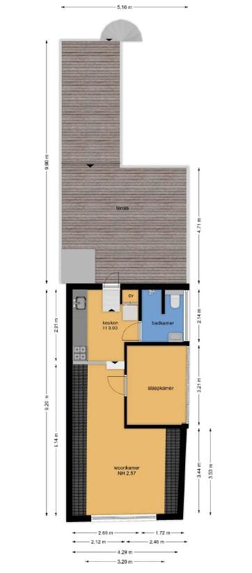Winkelruimte op de begane grond is ca. 73 m² en het bovengelegen appartement bestaat uit ca. 36 m² voorzien van een terras aan de achterzijde. Het appartement is bereikbaar via een ingang naast de winkel aan de voorzijde. Het pand zal in huidige staat, leeg en ontruimd worden opgeleverd.