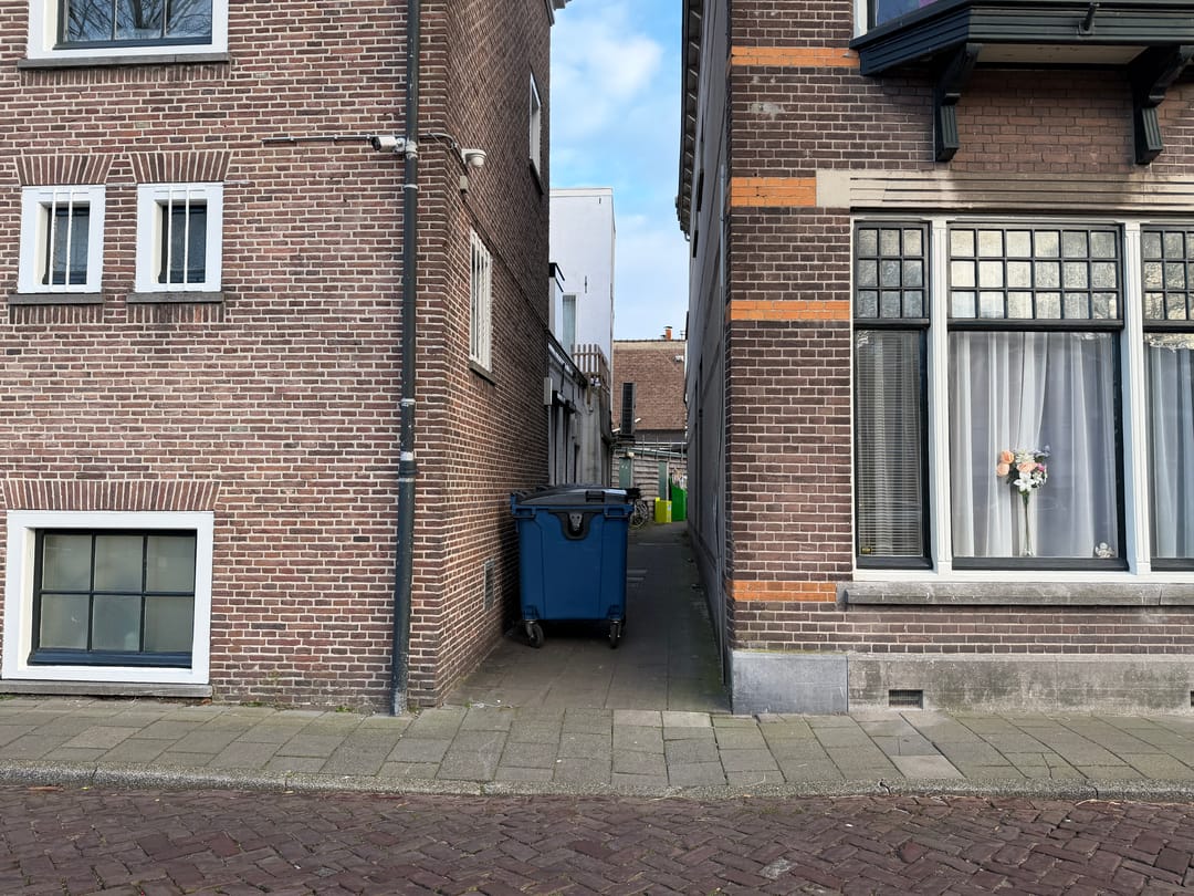 Vanaf de Oudegracht is de achterzijde bereikbaar via een ruime gedeelde steeg. Via een in 2008 gebouwde dubbele schuur is er toegang naar een binnenplaats van ca. 28 m² en de winkel en woning. Er is mogelijkheid om de winkelruimte uit te breiden en op de uitbreiding een dakterras te realiseren.