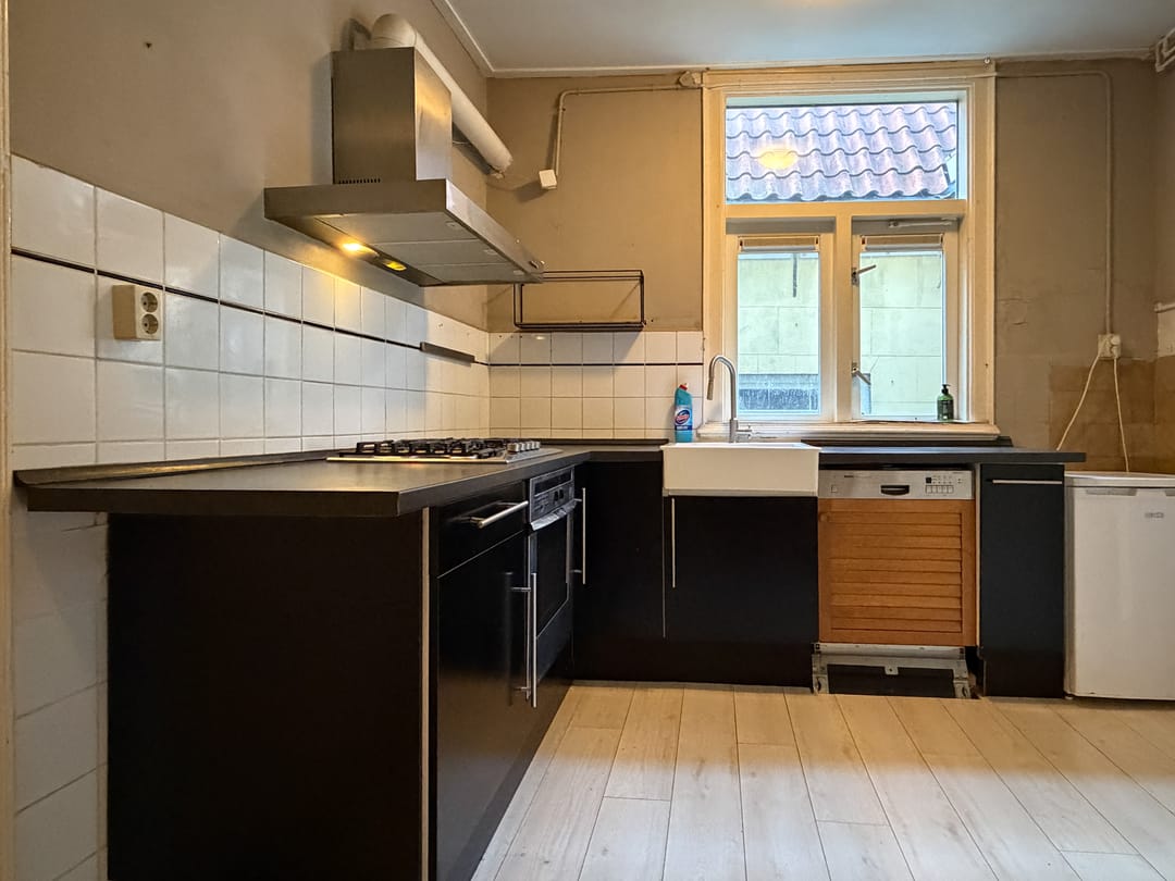 Het VOORHUIS bestaat uit 3 bouwlagen waarvan de begane grond een deel van de winkel omvat. Op de eerste verdieping bevindt zich aan de voorzijde een lichte woonkamer met in de tussenbouw een ruime keuken. Op de 2e en bovenste etage bevinden zich drie ruime slaapkamers.