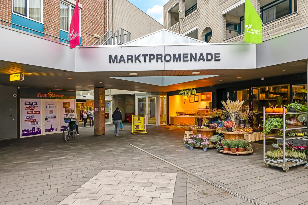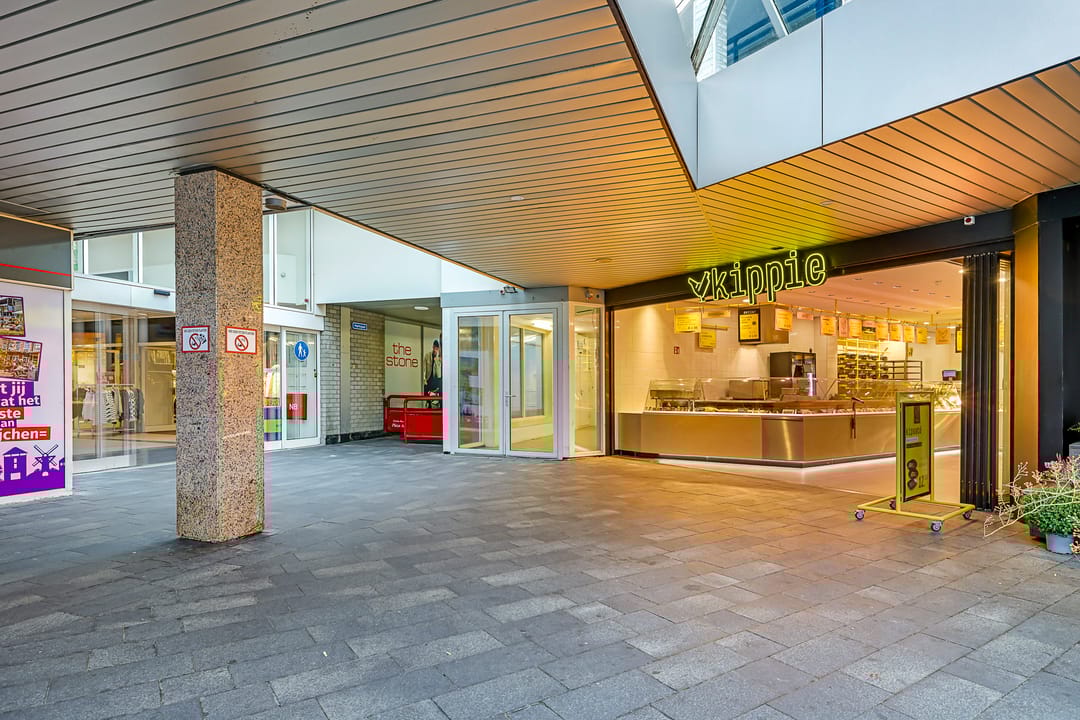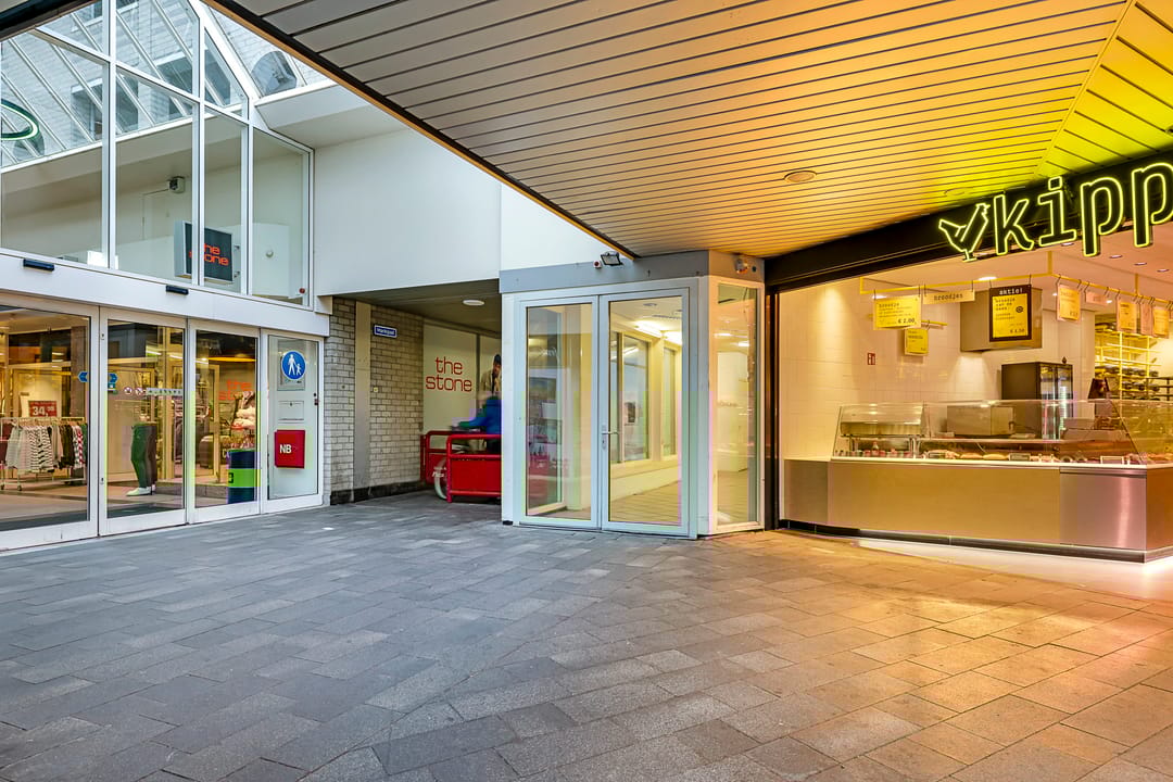 * direct aansluitend aan het overdekte winkelcentrum en naast een veel gebruikte doorgang richting Markt en Hema.
