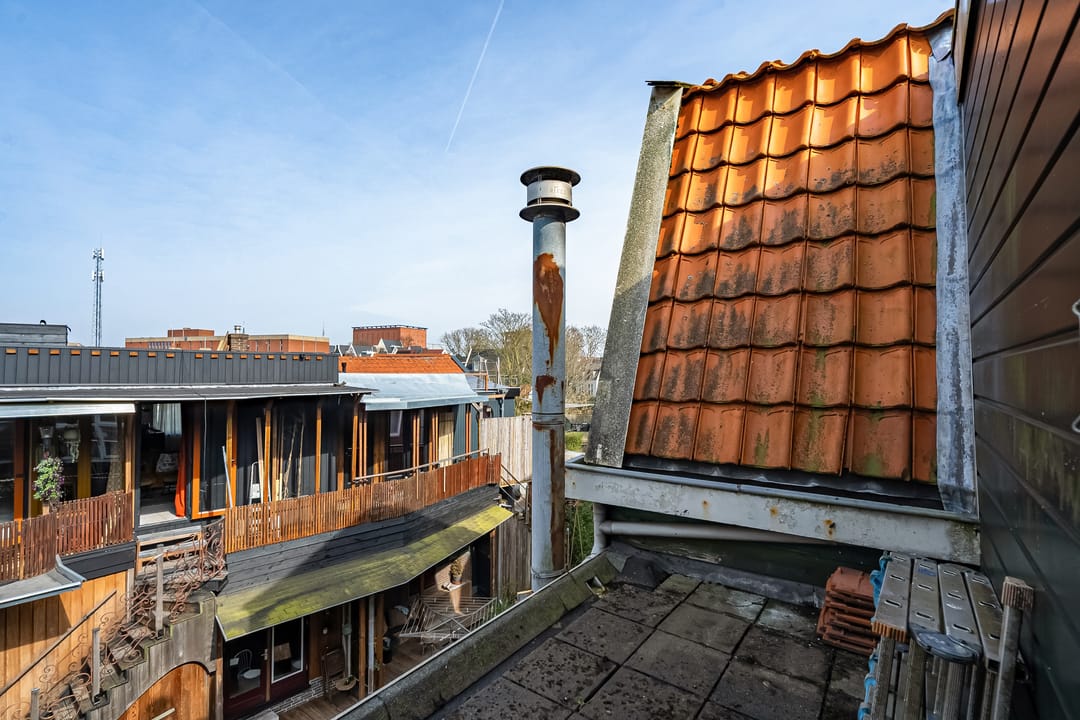 Op de eerste verdieping een ruim appartement met dakterras van maar liefst ca. 27 m2. Het appartement is voorzien van een woonkamer, keuken, slaapkamer en badkamer. Aan de achterzijde een klein balkon (zonder hekwerk).
