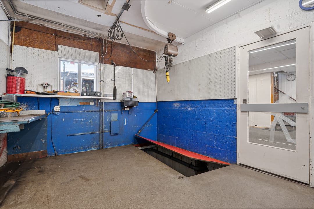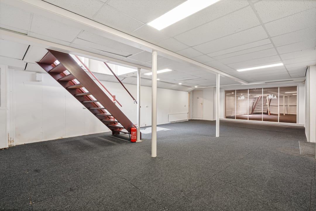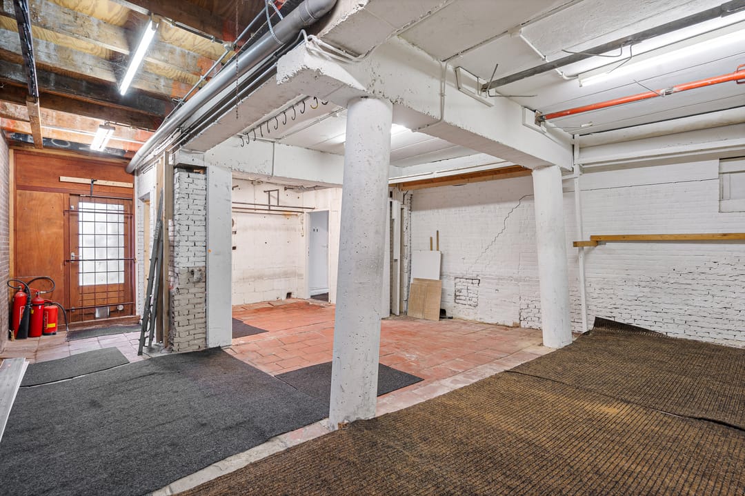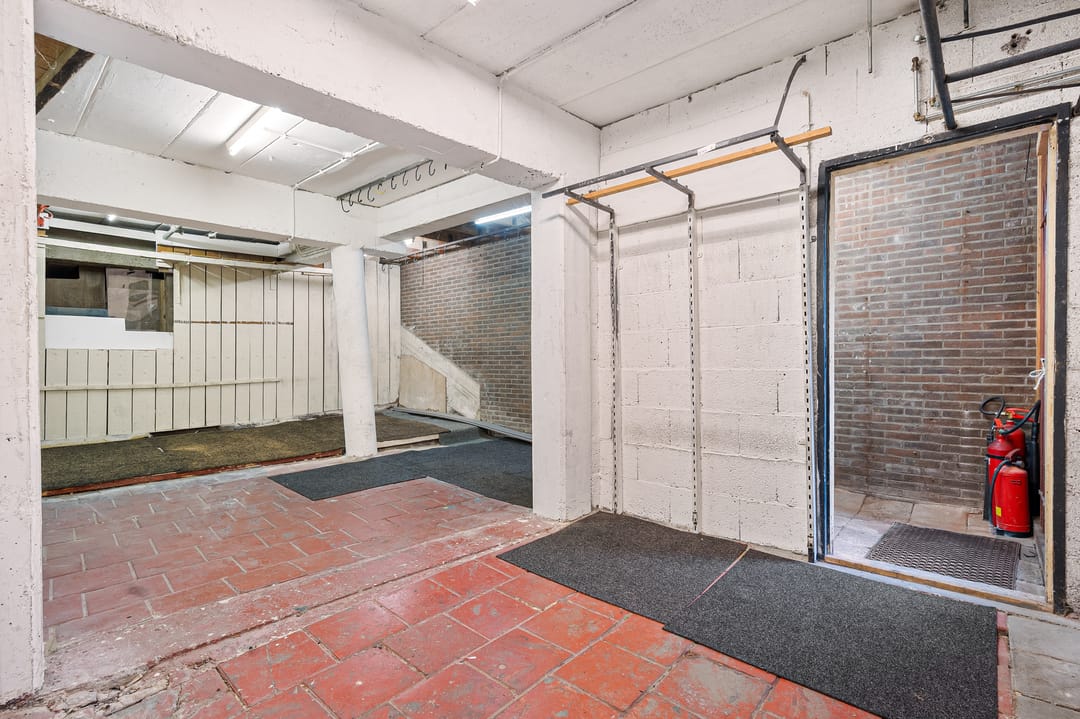 Gelegen op de begane grond is een winkelruimte met magazijn/werkplaats en klein kantoor, middels de trap bereikt u het souterrain. Momenteel in gebruik als showroom. Tevens in het souterrain een magazijn.