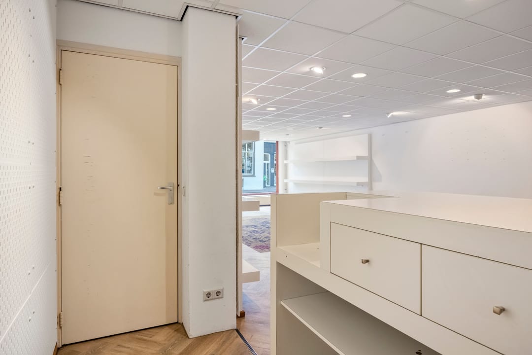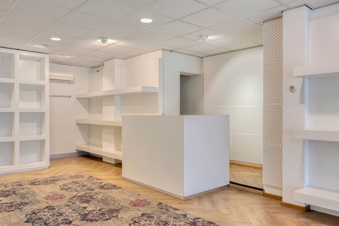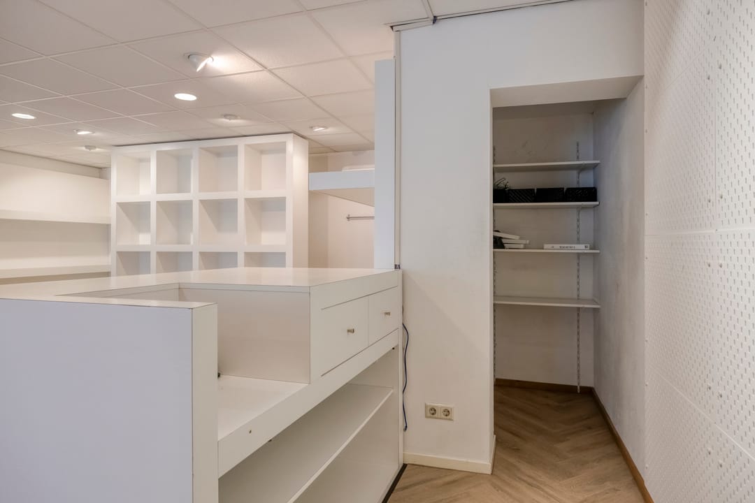 Binnenkomst via de centrale entree met toegang tot een open, lichte winkelruimte voorzien van etalagerekken en airconditioning.