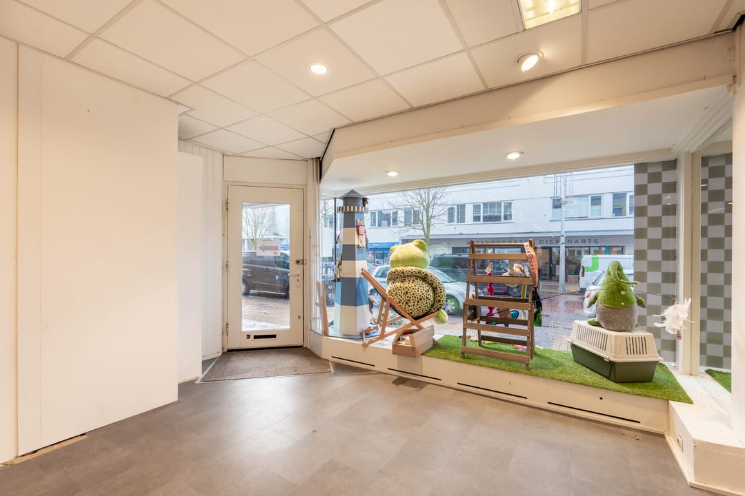 U komt op de begane grond binnen via een deur met grote raampartijen en elektrische zonwering, uitermate geschikt voor een aantrekkelijke etalage. Direct bij de entree bevindt zich de meterkast.