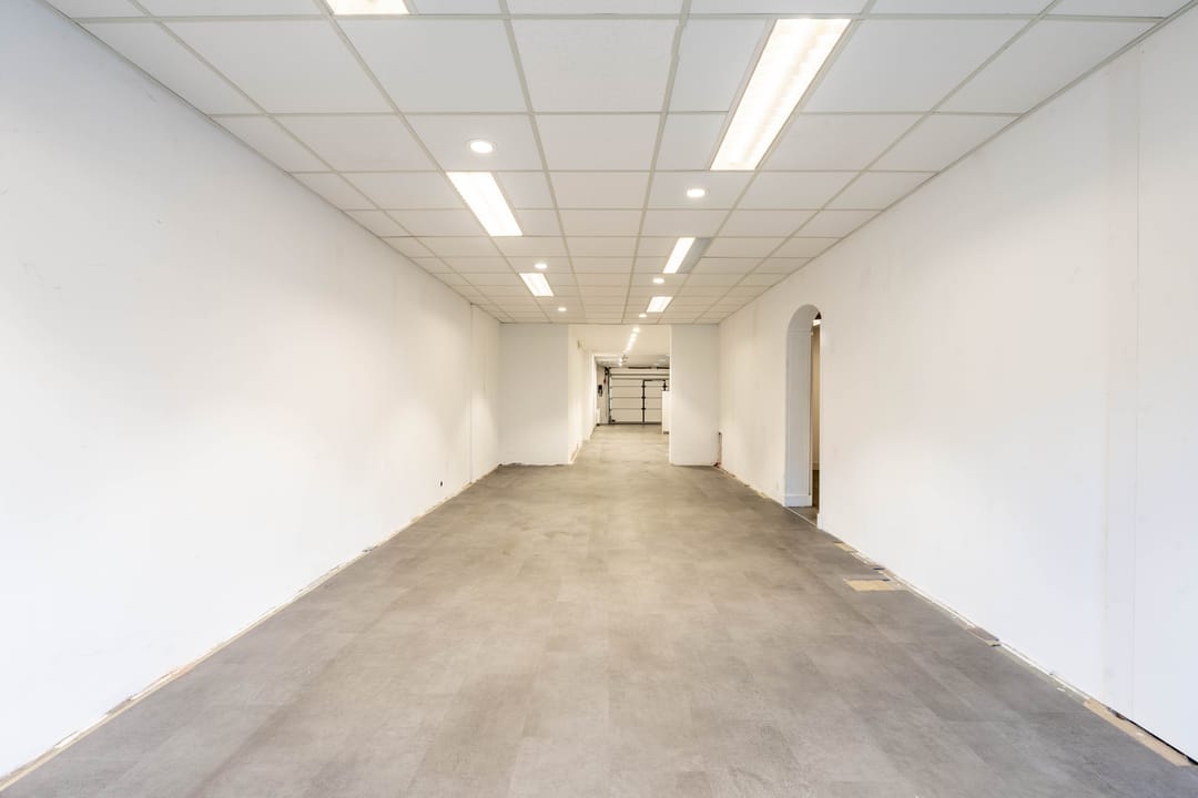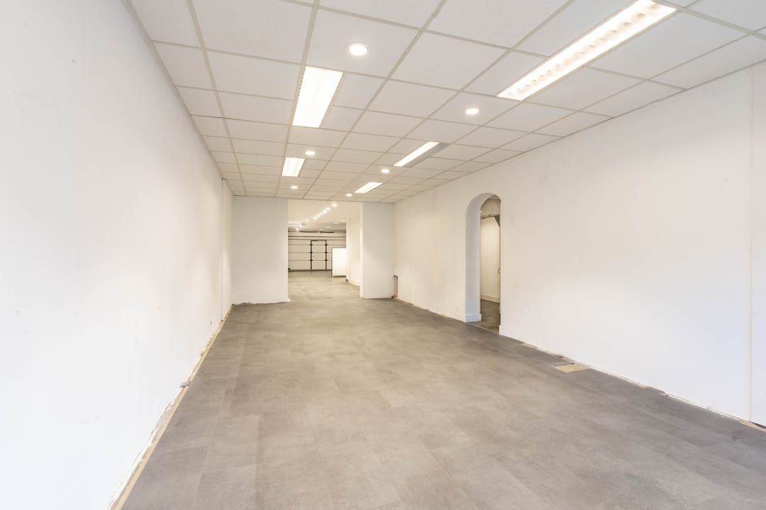 - Royale bedrijfsruimte (ca. 120 m2) op de begane grond met pantry, 2 toiletten en bergruimte.