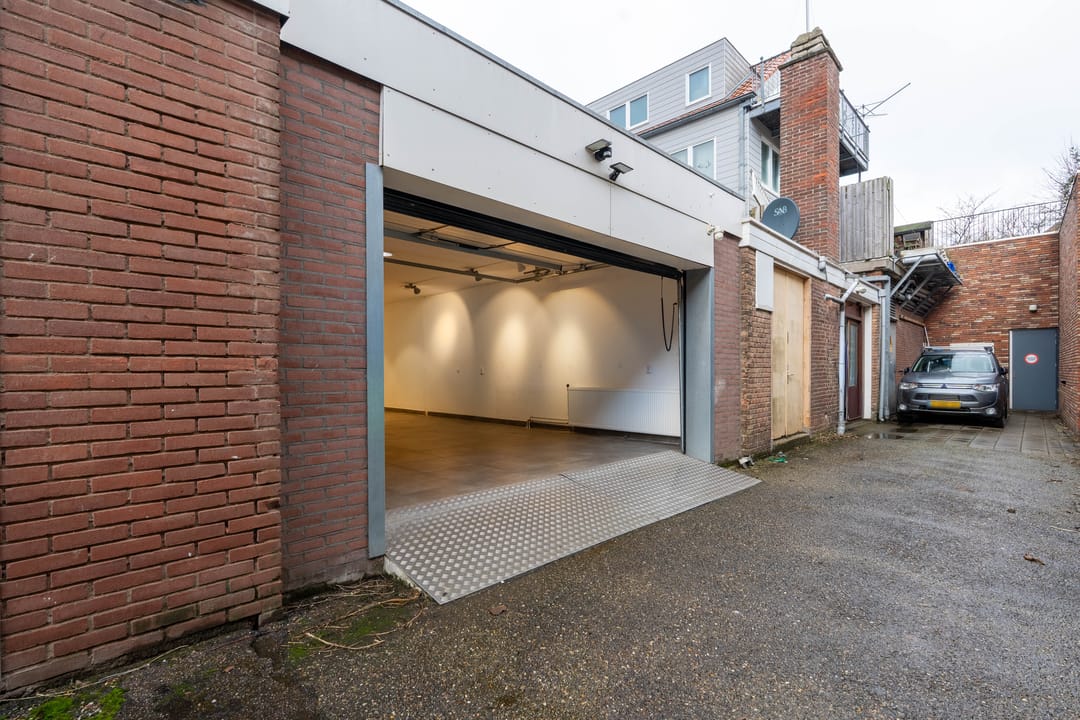 Ook bevindt zich aan de achterzijde een elektrische overheaddeur, ideaal voor laden en lossen. De overheaddeur heeft een inrijbreedte van circa 3,90 meter en een inrijhoogte van circa 2,15 meter. Deze komt uit in een zijstraat van de Cornelis Slegersstraat.
