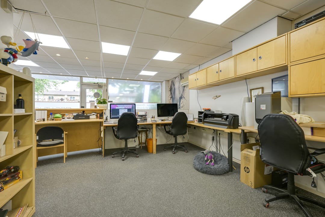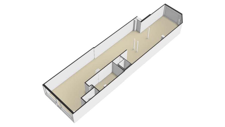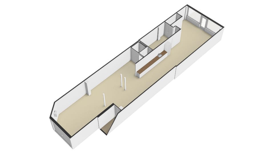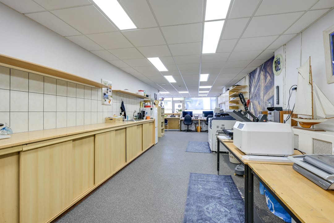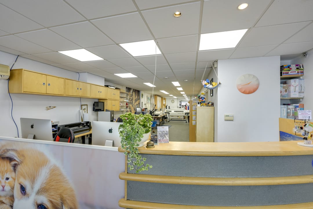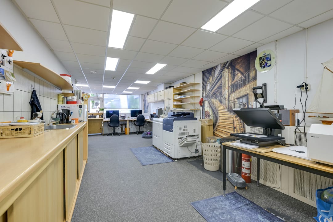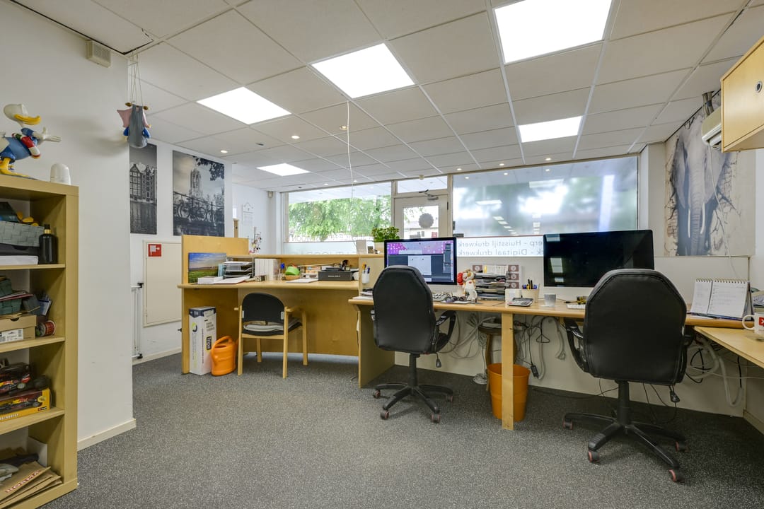 Bij binnenkomst is een ontvangstbalie te vinden, aan de rechterzijde is het voormalige kantoor te vinden. De ruimte heeft een diepte van ruim 24,5 meter en loopt door tot de elektriche roldeur. Het unieke aan deze winkelruimte is de mogelijkheid om de winkel-/ bedrijfs- / werkruimte achterom via de roldeur te bevoorraden.