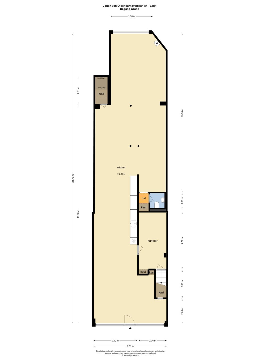 Deze multifunctionele winkel- / bedrijfsruimte is gelegen aan de doorgaande winkelstraat Johan van Oldenbarneveltlaan, net buiten het centrum van Zeist. De winkelruimte is tot voor kort in gebruik geweest als bedrijfsruimte voor een kleinschalige drukkerij & ontwerpbureau. De ruimte is zeer geschikt voor detailhandel, publiekgerichte dienstverlening, horeca A en horeca B en maatschappelijke voorzieningen. De winkelruimte heeft een bruto vloeroppervlakte van ca. 157 m2.