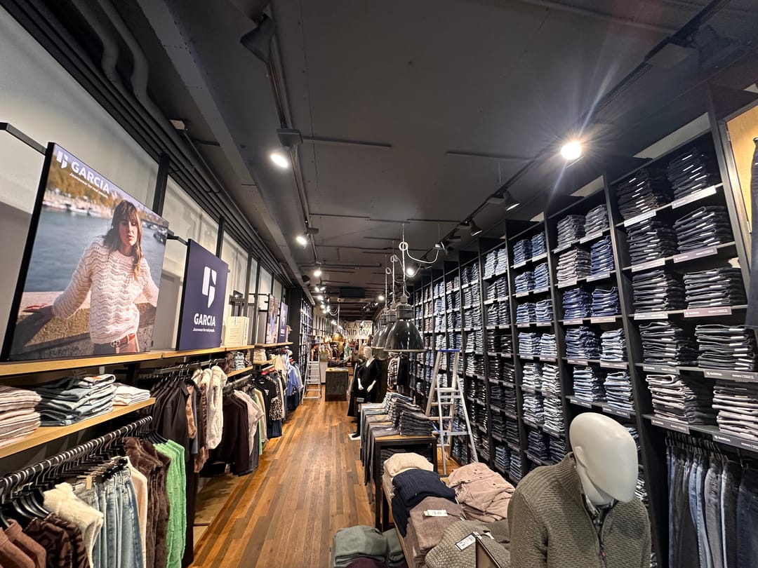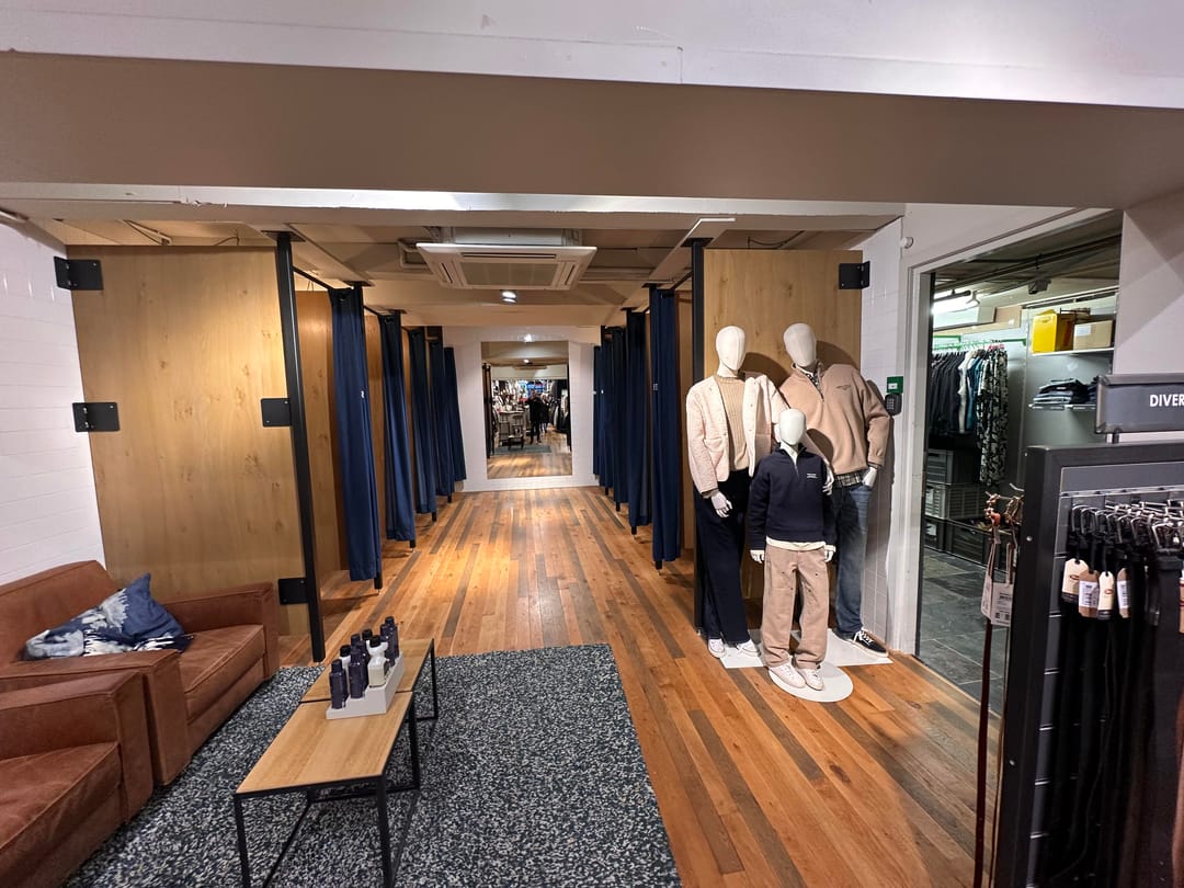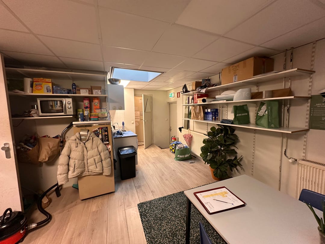 Aan de achterzijde van de verkoopvloer bevinden zich in de huidige situatie de kleedkamers en een magazijn met toegang tot de achter gelegen bevoorradingsstraat (Nieuwstraat). Achterin de winkel bevindt zich op dit moment ook de personeelsruimte. Met een goed bouwkundig oog is vergroting van de verkoopruimte een optie.