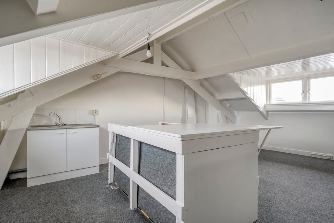 1. Studio: bestaande uit een royale zolder etage (2e etage) v.v. kleine pantry en op de 1e etage een separate badkamer (douche/wastafel/wm aansluiting) en separate toilet