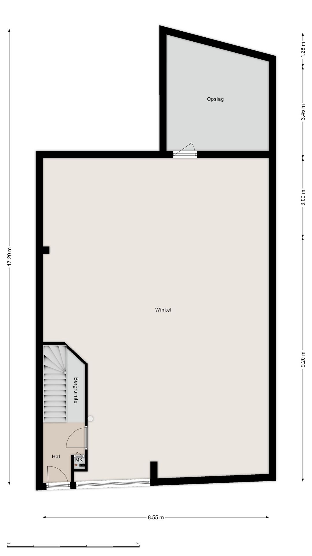 Entree/verkoopruimte, magazijn-/pantryruimte, toilet.